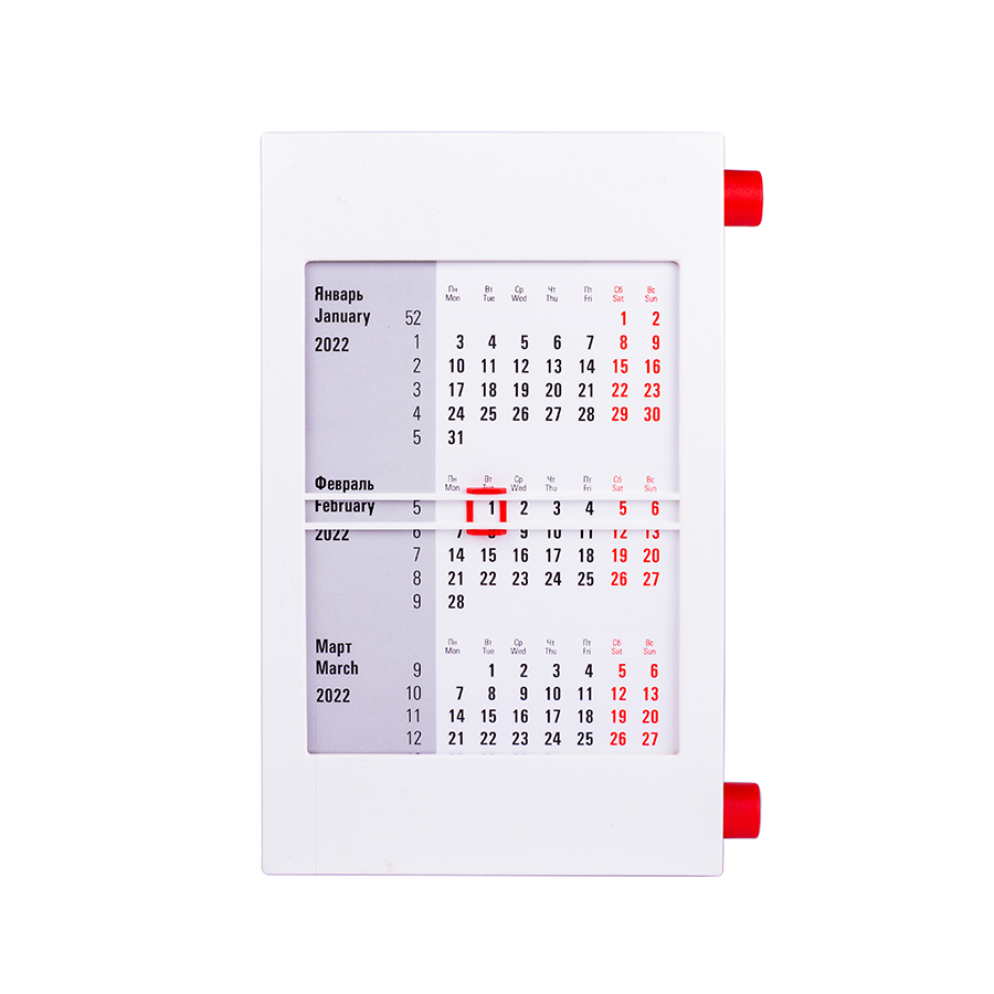 Календарь настольный на 2 года; сетка 26-27, красный, белый