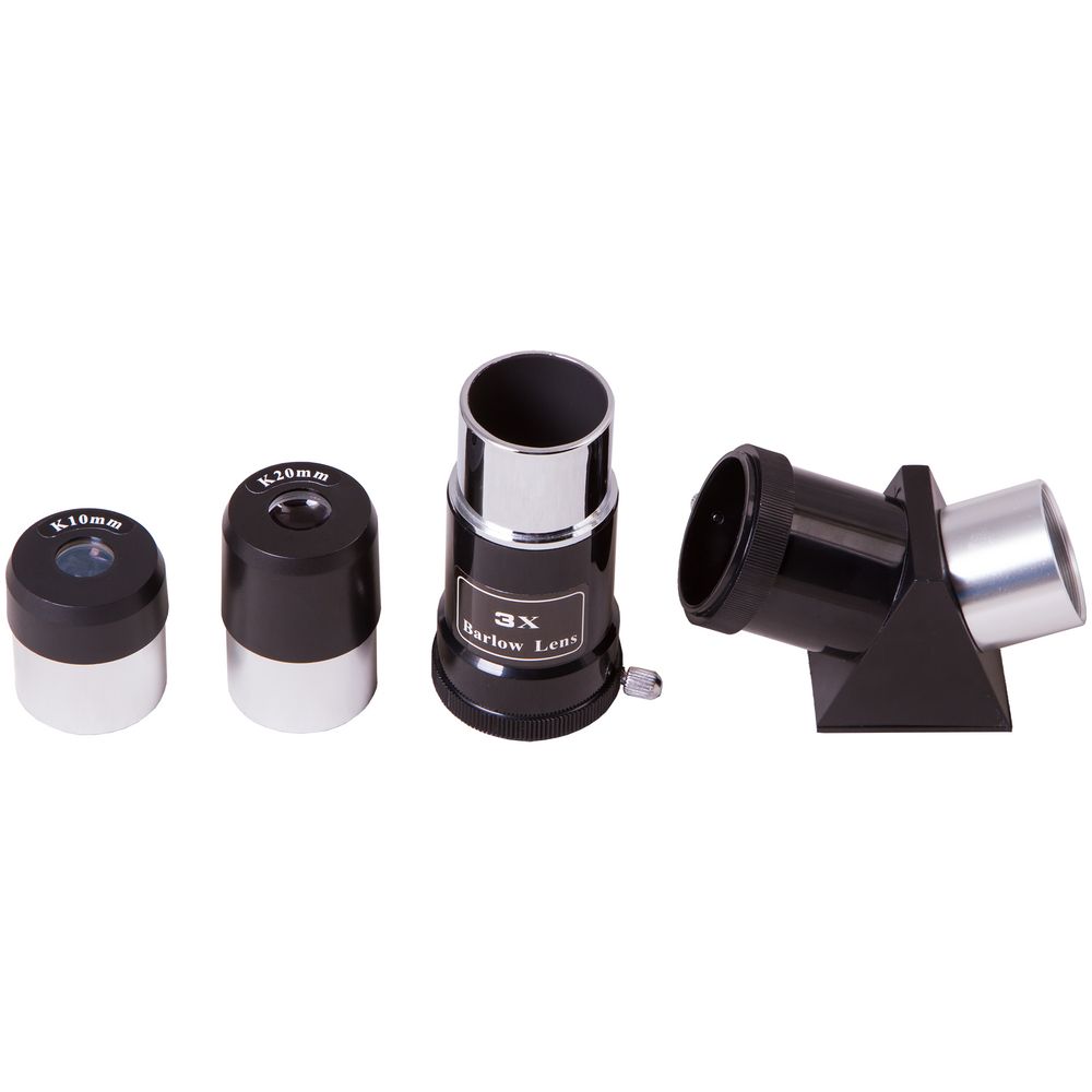 - В комплекте окуляры: K10 мм (40x), K20 мм (20x); линза Барлоу 3х