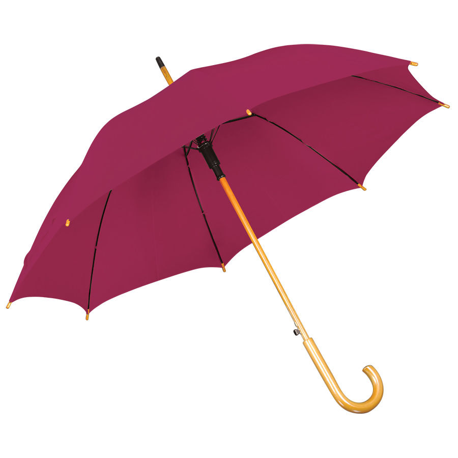Зонт-трость с деревянной ручкой, полуавтомат; бордовый; D=103 см, L=90см; 100% полиэстер