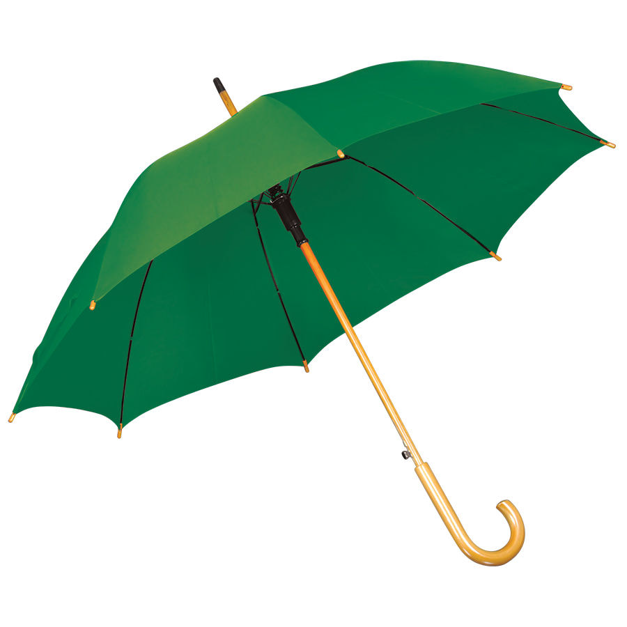 Зонт-трость с деревянной ручкой, полуавтомат; зеленый; D=103 см, L=90см; 100% полиэстер