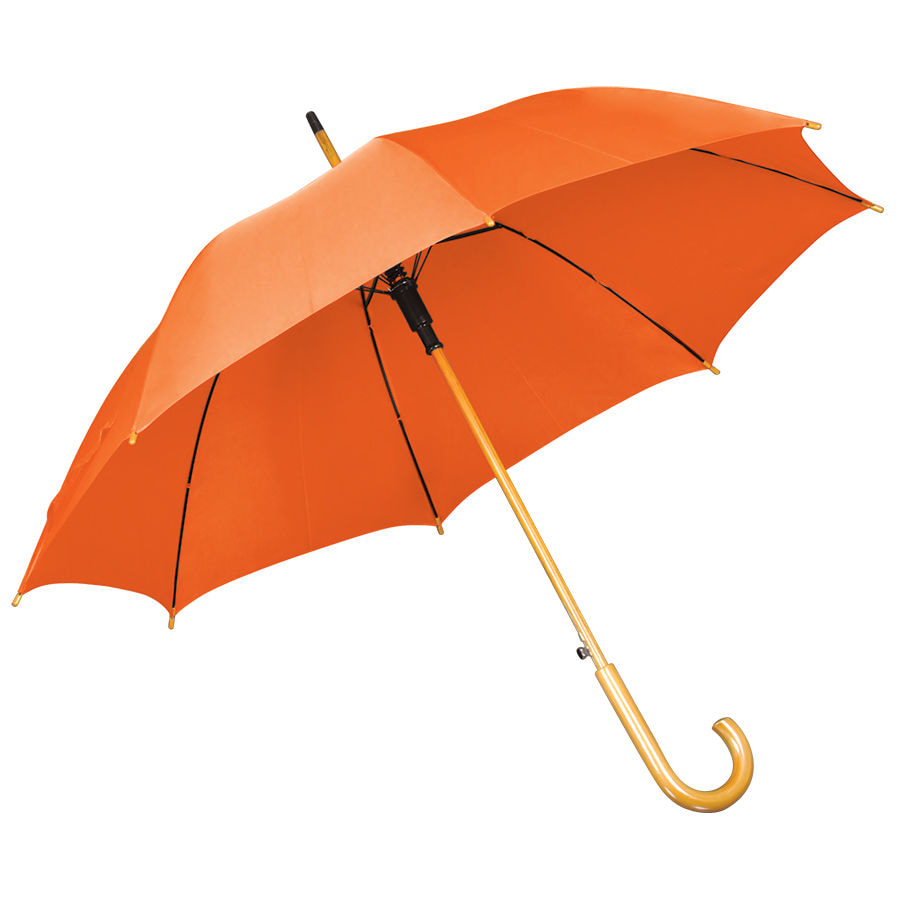 Зонт-трость с деревянной ручкой, полуавтомат; оранжевый; D=103 см, L=90см; 100% полиэстер
