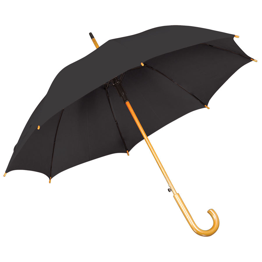 Зонт-трость с деревянной ручкой, полуавтомат; черный; D=103 см, L=90см; 100% полиэстер