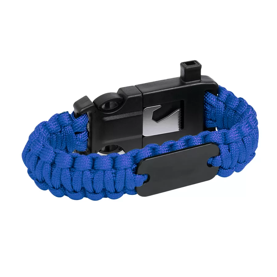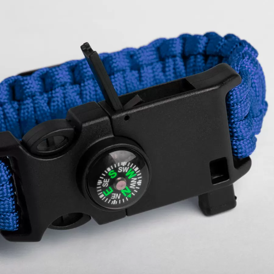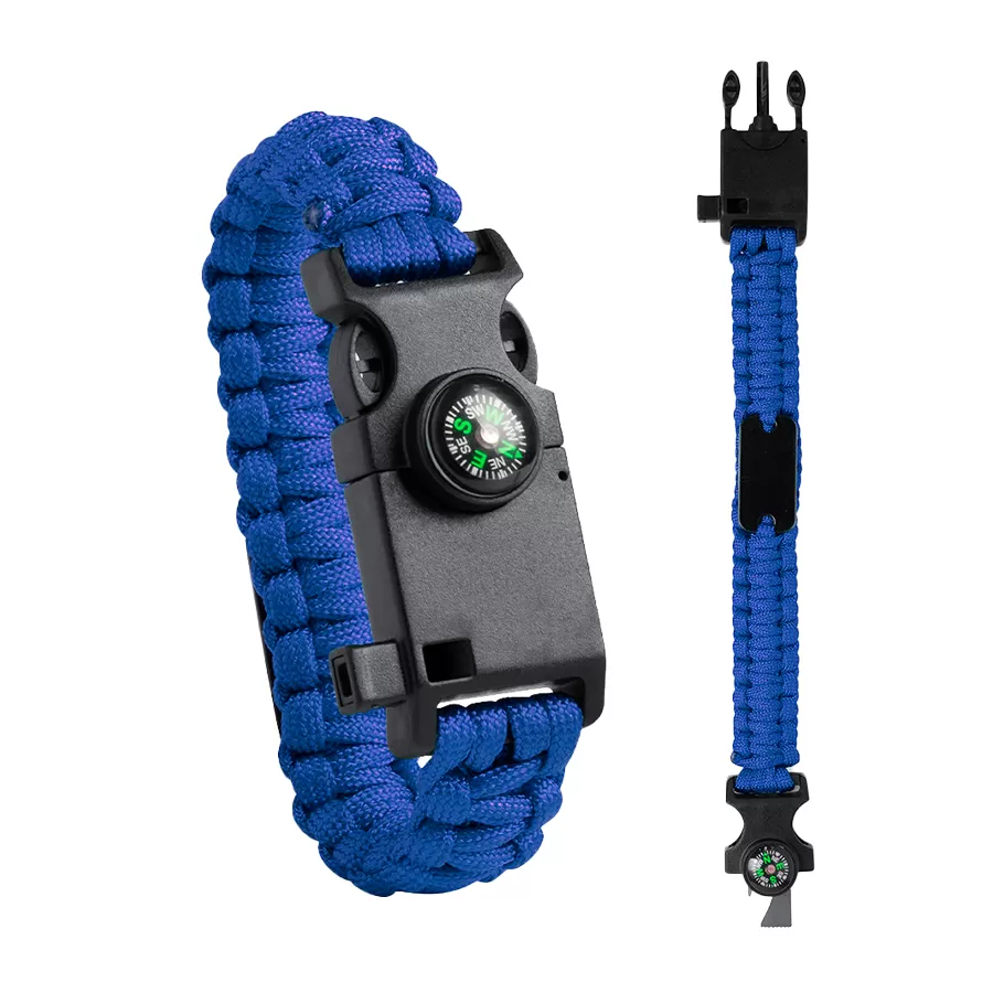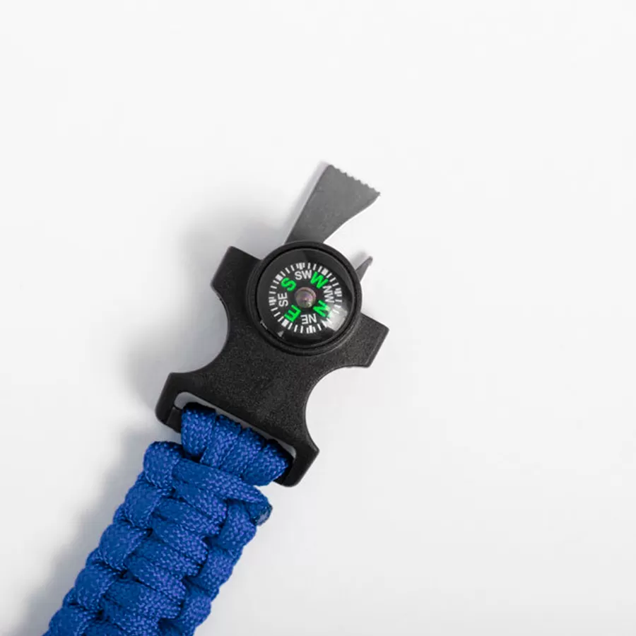 Включает в себя 4 функции: компас, свисток, кремневый скребок (при ударе его о металл выскакивают искры) и открывашка. Отдельно стоит отметить удобную застежку.