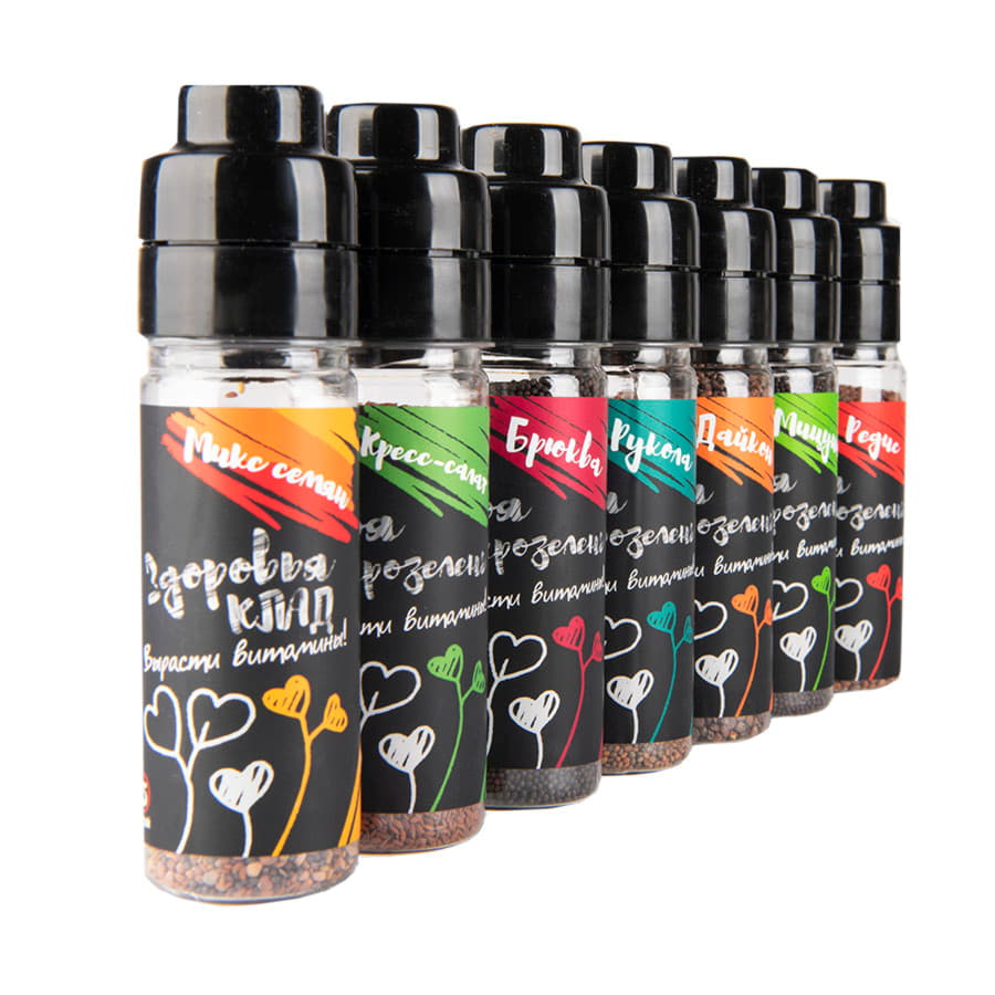 Семена руколы «Моя микрозелень», бутылка с дозатором 75 гр, черный