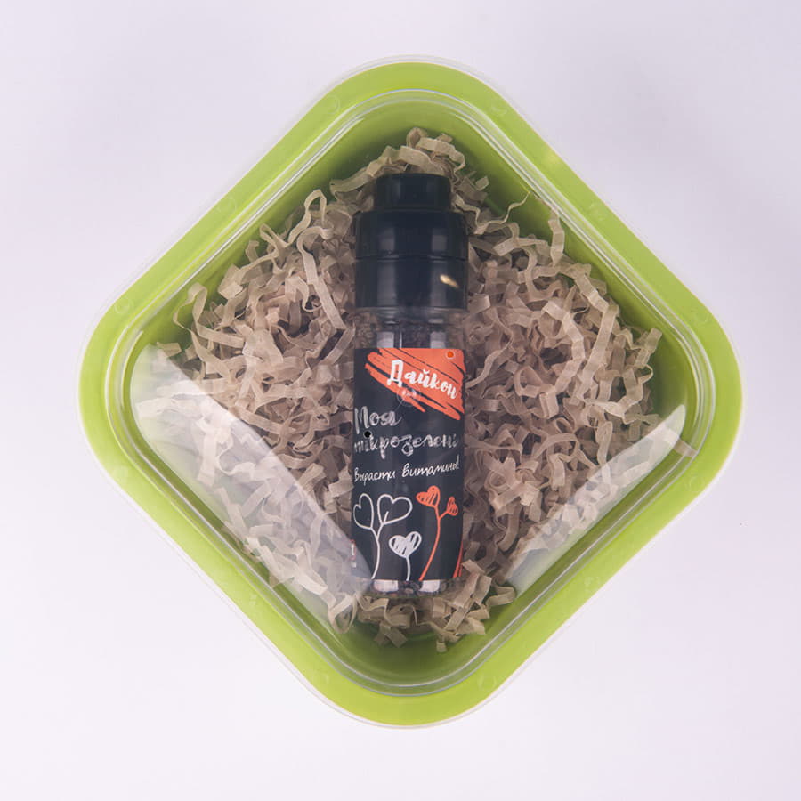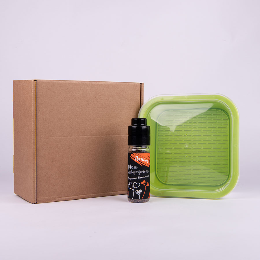 Подарочный комплект для проращивания микрозелени: проращиватель, семена дайкона, зеленый