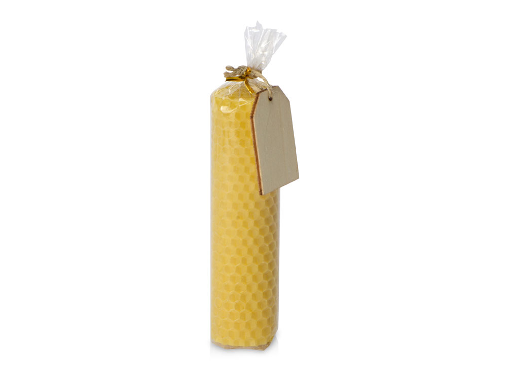 Свеча из вощины 3,5 х 12,5 см с деревянным ярлыком, желтый