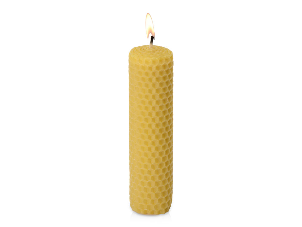 Свеча изготовлена вручную из пчелиного воска. При зажжении свечи из воска, комната наполняется медово-восковым ароматом.