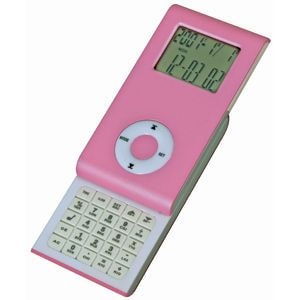 Калькулятор раздвижной с календарем и часами, розовый