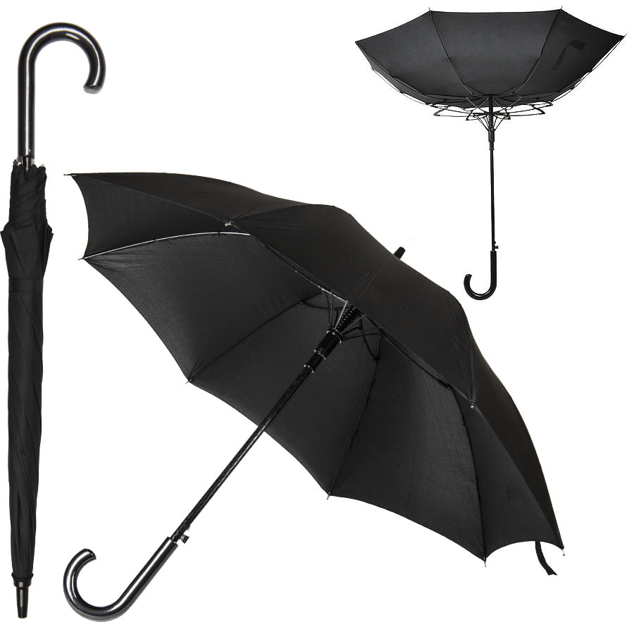 Зонт-трость ANTI WIND, пластиковая ручка, полуавтомат, черный