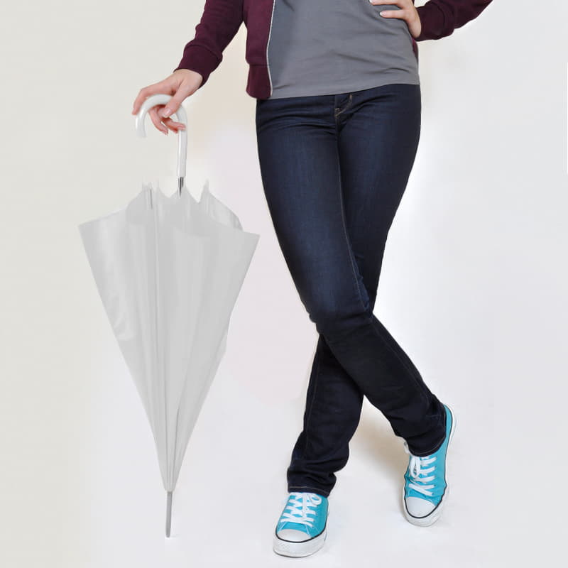 Зонт-трость с пластиковой ручкой, механический; белый; D=103 см; 100% полиэстер 190T