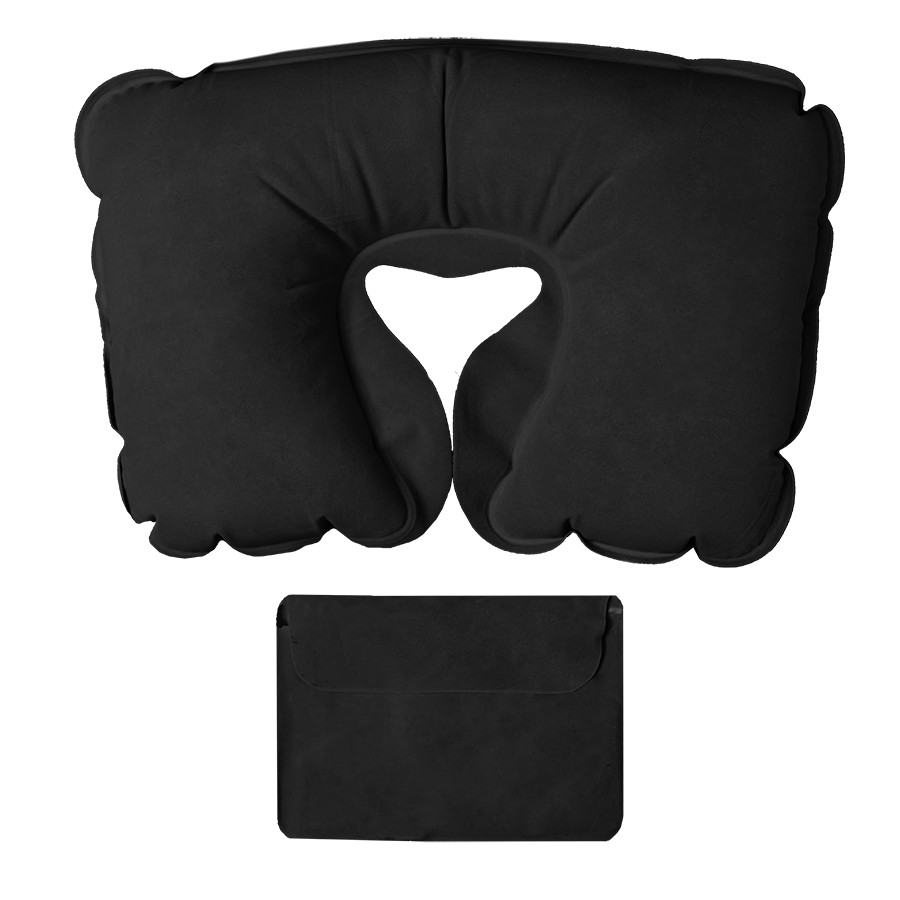 Подушка надувная дорожная в футляре; черный; 43,5 х 27,5 см; твил