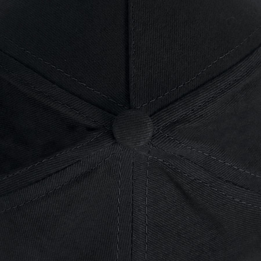 Жёсткий козырек, 4 вышитых люверса, 5 клиньев без лобового шва, металлическая застёжка.