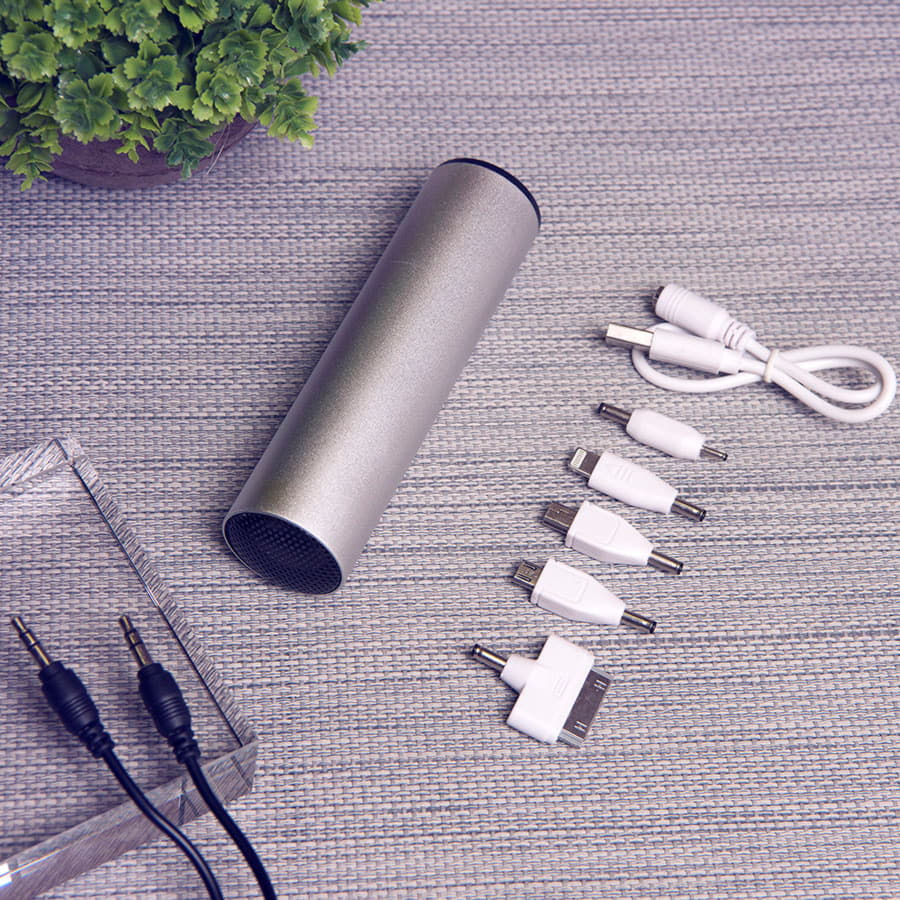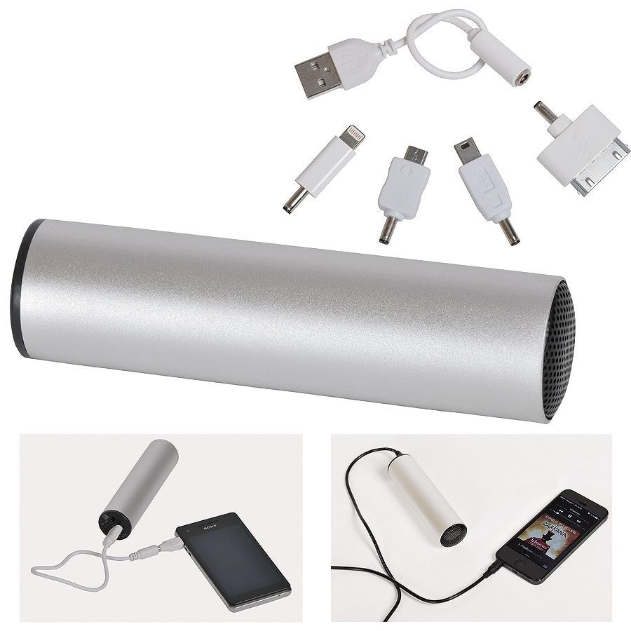 Колонка проводная 'Soundcheck' с пауербанком 2200mA с набором переходников, серебристый