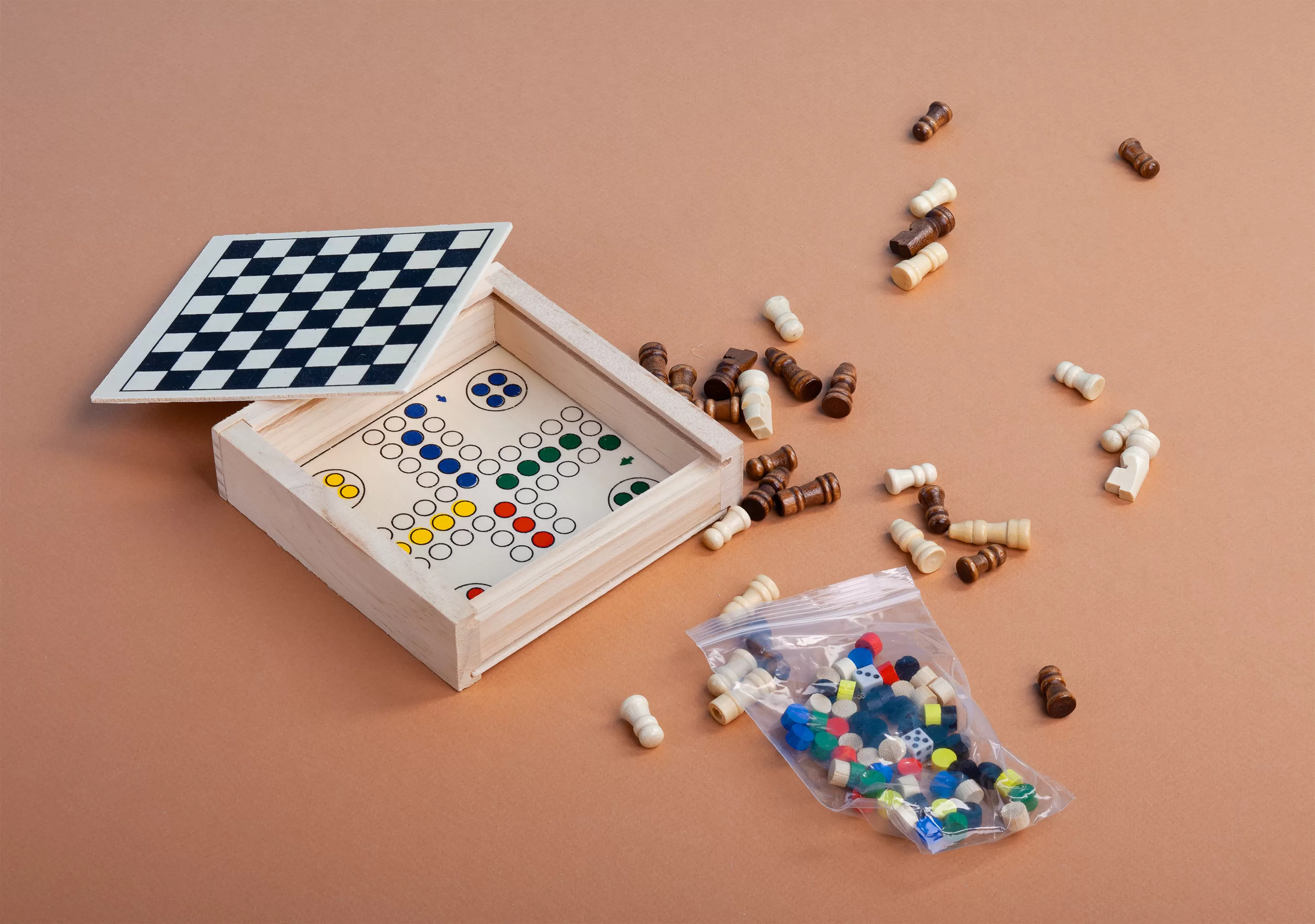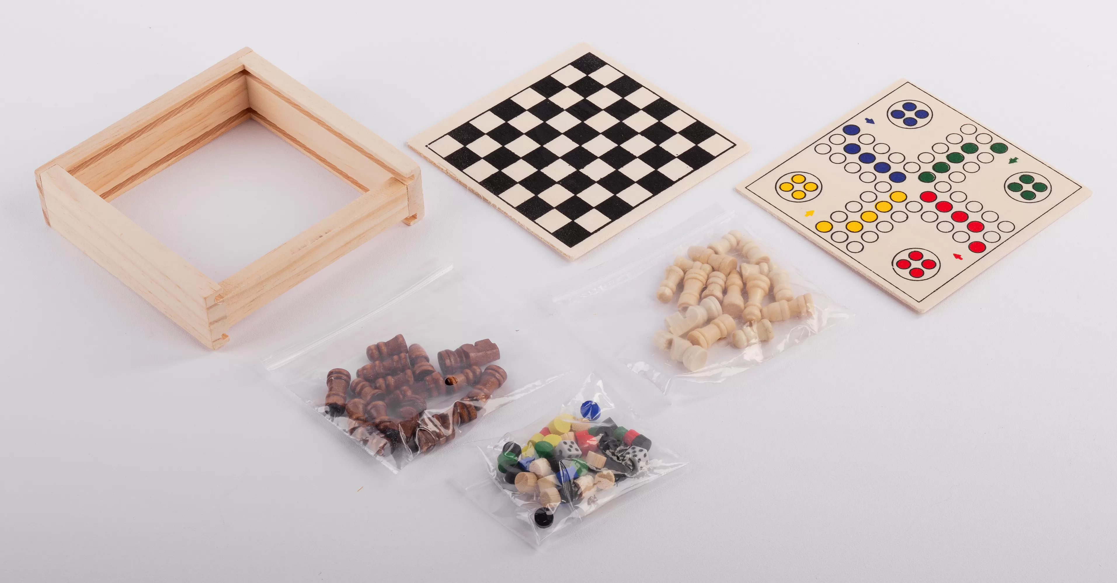Набор игр из дерева: шахматы, шашки и лудо. Поставляется в деревянном футляре с крышкой. Экологичность, доступность и простота в уходе: такой набор станет отличным развлечением для игроков любых возрастов. Кроме того, их можно брать с собой в путешествие
