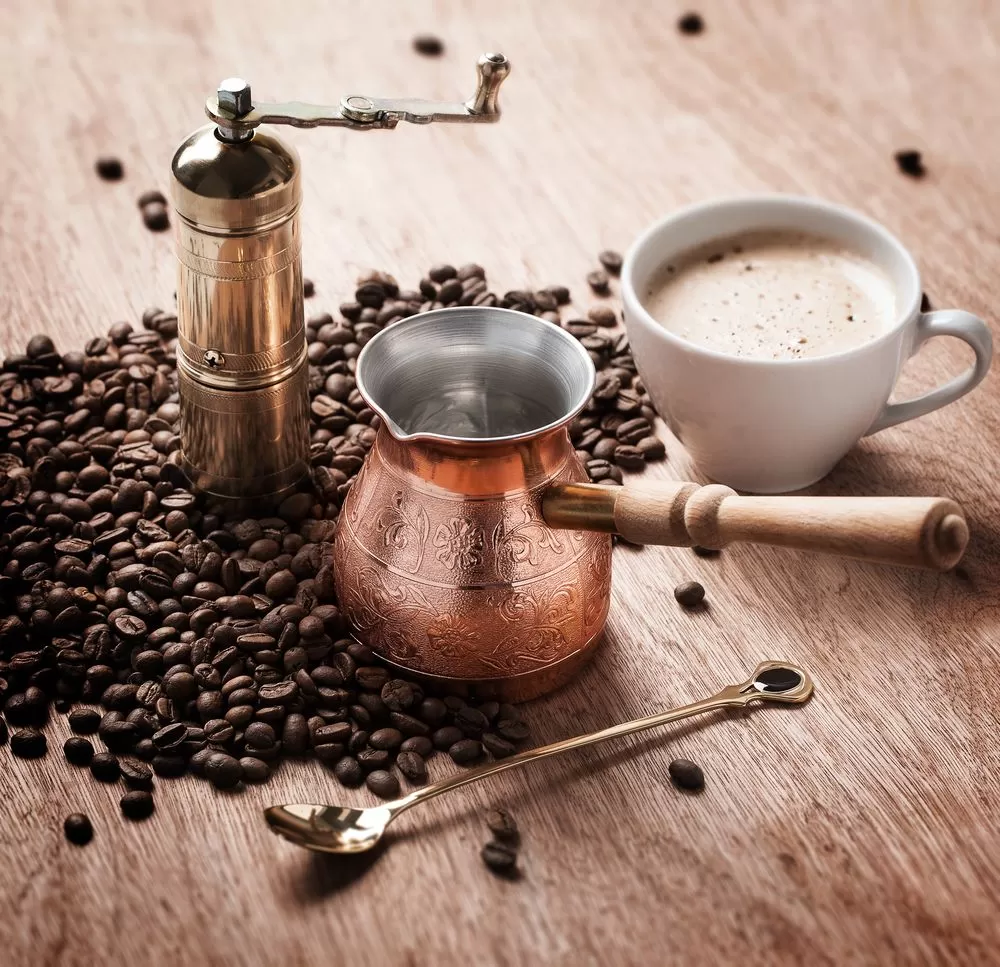 В заказе возможен разнотон ручек у турок и разные ложки (золотистая и серебристая).