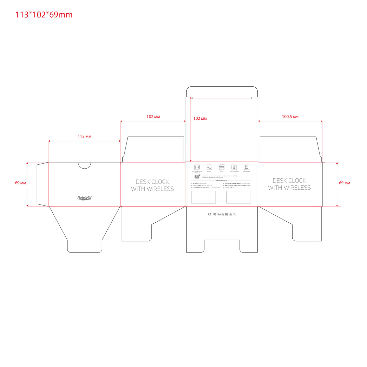 ИнструкцияУмные настольные часы 5 в 1 - это многофункциональное устройство, которое можно использовать как станцию для беспроводной зарядки, термометр для помещений, будильник, часы и календарь. Также поддерживается установка трёх будильников одновременно и выбор формата времени. Удобная панель управления и регулируемая яркость экрана позволяют настроить интерфейс под индивидуальные потребности, сделав гаджет более удобным в использовании. Широкие технические возможности дополняются современным и лаконичным дизайном: стильный внешний вид, крупный дисплей и яркие символы. Экран изделия закрыт защитной пленкойРазмеры в упаковке: 113*100*70 мм. Вес 271 грРазмеры без упаковки: 108*78*65 мм. Вес 234 гр