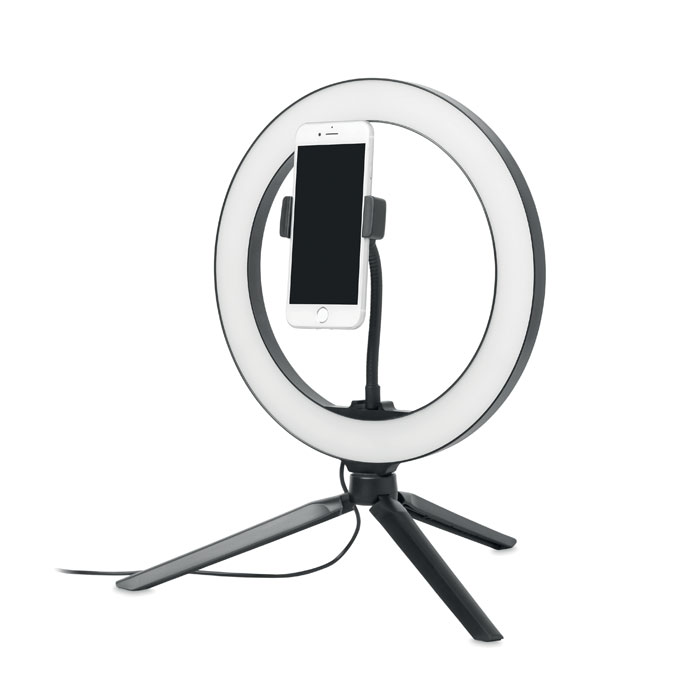 Светодиодная лампа диаметром 26 см со штативом и держателем для телефона. Подойдет для tik-tok®, прямых эфиров, трансляций и фотосъемки. Белый, теплый, светлый (120 светодиодов) с 10 уровнями яркости.