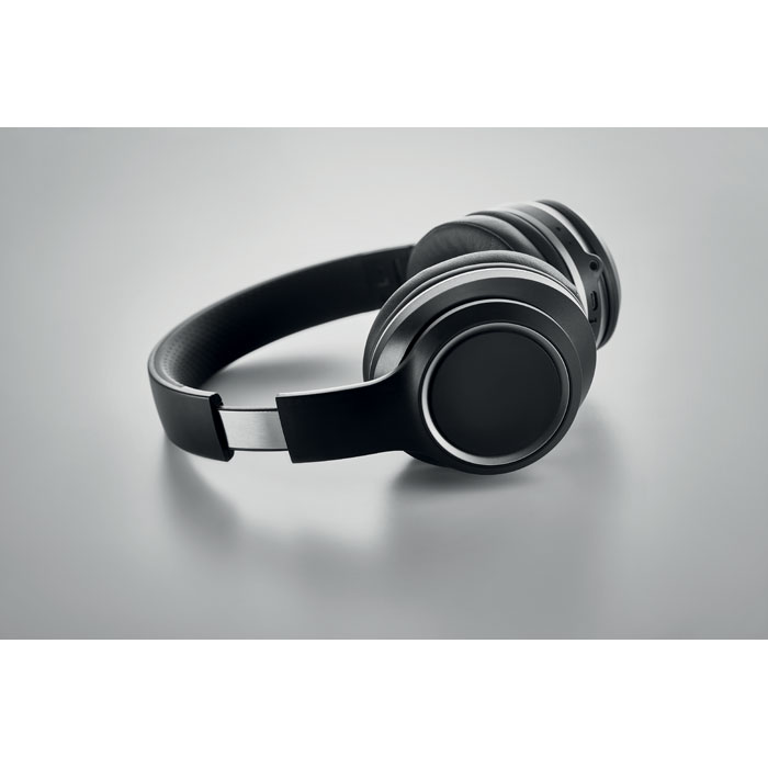 Складные беспроводные наушники с активным шумоподавлением (ANC) из ABS. Перезаряжаемый литий-ионный аккумулятор 500 мАч. Функция громкой связи и встроенный микрофон. Время воспроизведения прибл. +10 часов. В комплекте кабель для зарядки micro USB. Все представлено в чехле из полиуретана. Радиус действия: 10 м.
