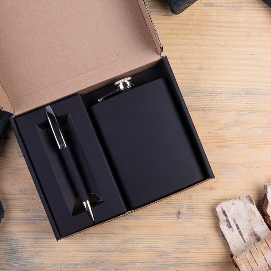 Набор подарочный BLACK LINE: фляжка, ручка, черный