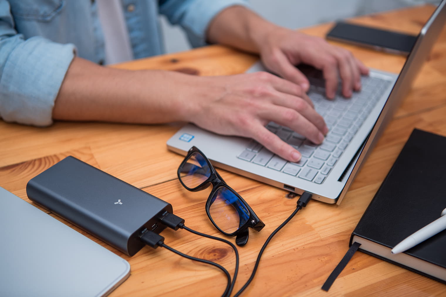 Два входных и три выходных порта решают почти все имеющиеся с различными типами проводов проблемы. Всегда под рукой будут входные порты USB и разъём для зарядки аккумулятора Type-C.