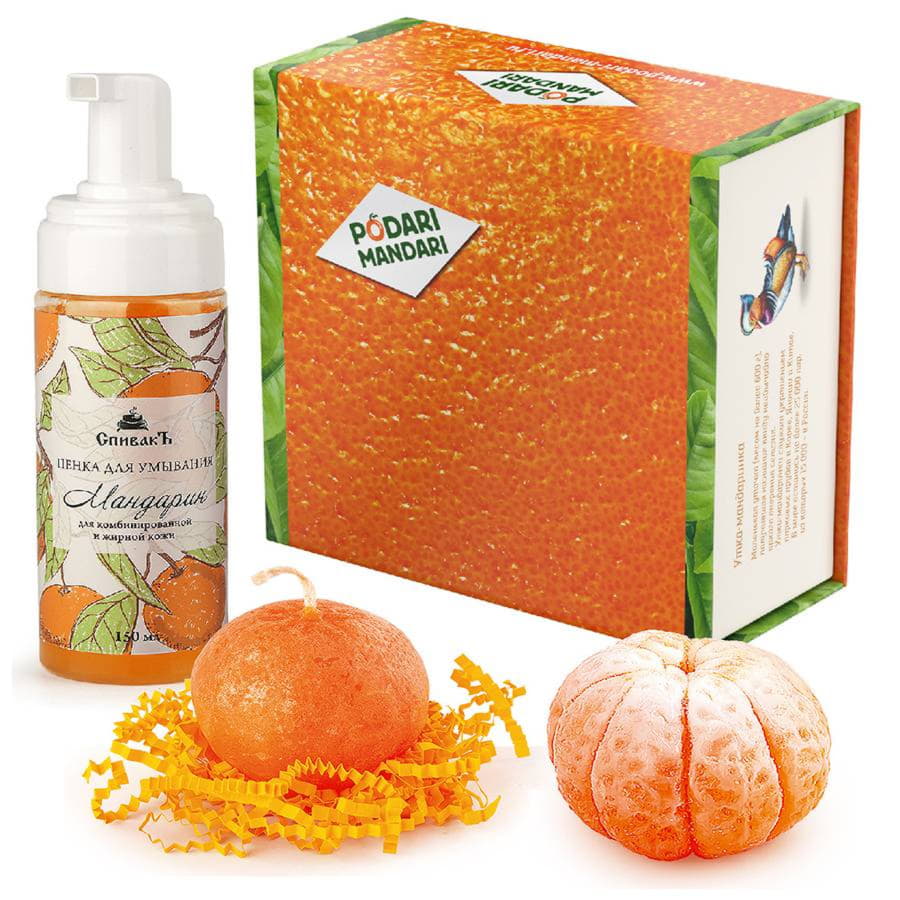Мыло в форме мандарина, пенка для умывания и свечка вызывают неподдельный восторг своими натуральными формами, а качество данных продуктов не вызывает лишних вопросов.