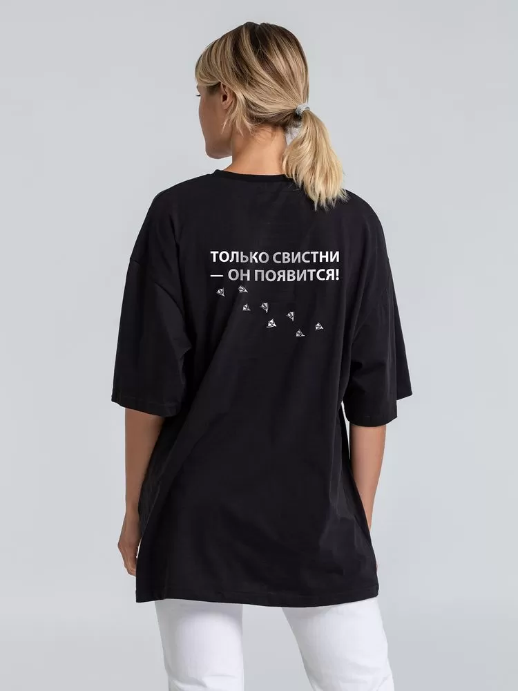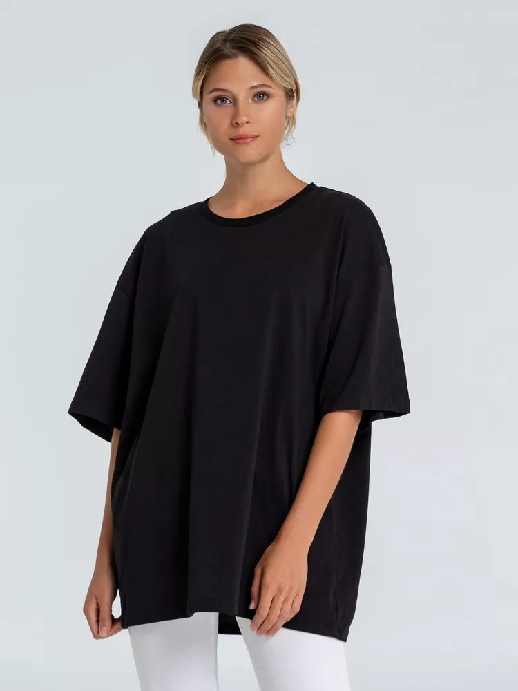 Оверсайз футболка для готовых появляться в нужном месте в нужное время!Футболка унисекс со спущенным плечом и круглым вырезом, отделанным резинкой.