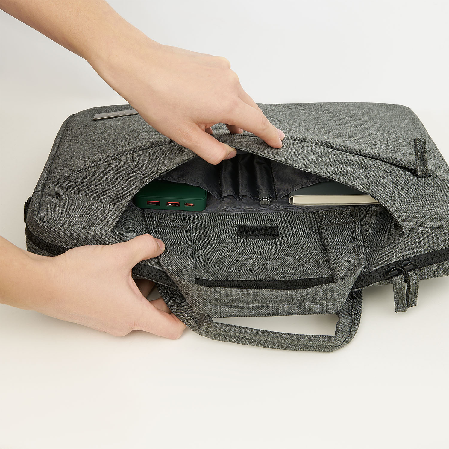 Удобная, вместительная и лаконичная современная модель сумки для ноутбука и документов.С внешней лицевой стороны сумка оснащена 2мя карманами, один на молнии, второй на липкой ленте с 2 кармашками для мелочей и 3мя отделениями под письменные принадлежности.С внешней внутренней стороны общее отделение на липучке, которое можно использовать как дополнительное отделение для бумаг, либо открыть молнию внизу и одевать на выдвижную ручку вашего чемодана.Внутри сумки 2 отделения с лентой-ограничителем на липучке – легко вмещает ноутбук с диагональю до 15,6 дюймов. Объем сумки - около 9 литров.В комплекте длинная ручка, max длина которой 151 см, с удобным и мягким погоном для фиксации ремня на плече.*Успешно пройден тест на прочность и износостойкость: легко выдерживает постоянную нагрузку 5 кг и температуру от -20˚С до +60˚С.Состав: водонепроницаемый внешний материал (защита от дождя и брызг): полиэстер 600D с PU подкладом, внутренний материал: полиэстер 210DРекомендация по уходу: только ручная стирка щадящими средствами до 30˚СПодходит для ноутбука с диагональю до 15,6 дюймов