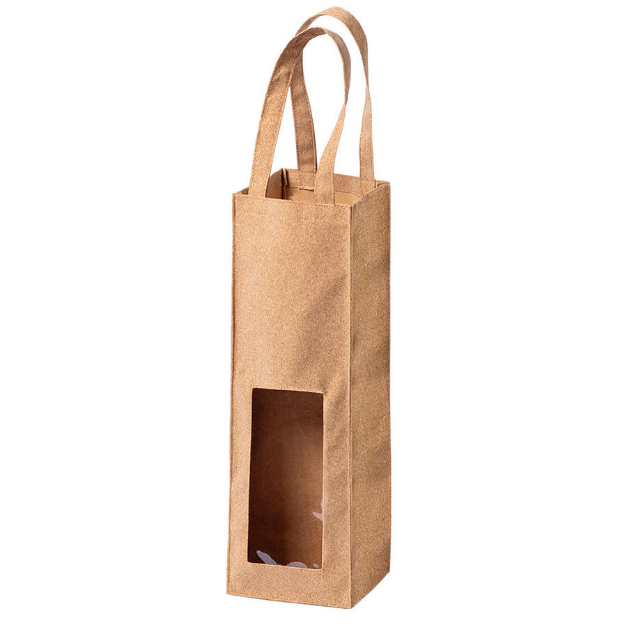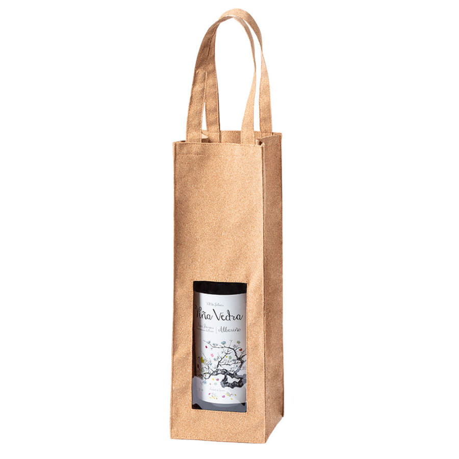 Упаковка для одной бутылки с окном и ручками, изготовлена из пробкового дерева