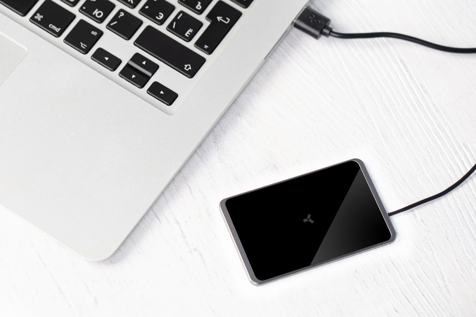 Беспроводная зарядка из закаленного стекла Bermuda 15W прекрасно смотрится в любом интерьере. Она ультракомпактная, занимает всего 54х85 мм на рабочем столе. Мощность устройства 15 Вт, это позволяет быстро зарядить смартфон или планшет. Одним из ключевых преимуществ является способность материала корпуса отводить тепло. Благодаря этой технологии ни ваши гаджеты, ни само зарядное устройство не перегреются. Несмотря на металлический корпус, зарядное устройство весит всего 60 г. В комплект входит кабель длиной 1 м.