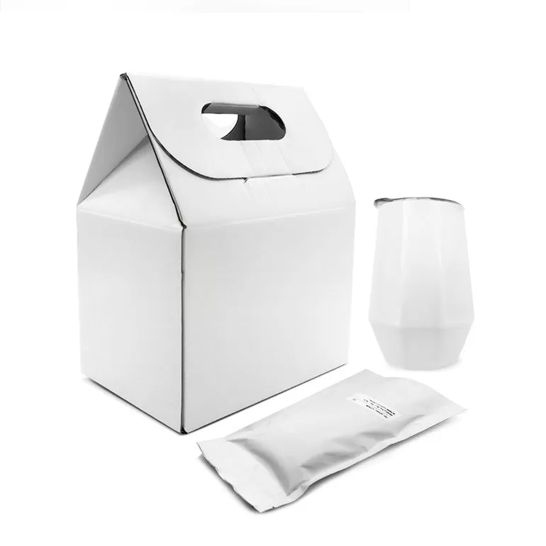 Упаковка «Coffee Box» напоминает «домик со сладостями». На крыше «домика» есть отверстия для удобной переноски. Они же создают свободное пространство, в которое можно вложить свои пожелания или послания. Внутри самой коробки расположен кофер и пакет с кофейными зёрнами.