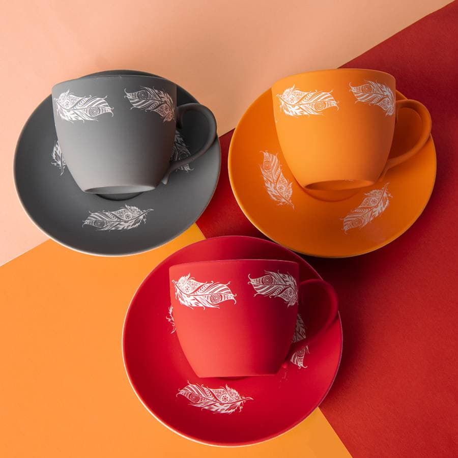Чайная пара из фарфора с прорезиненным покрытием soft-touch