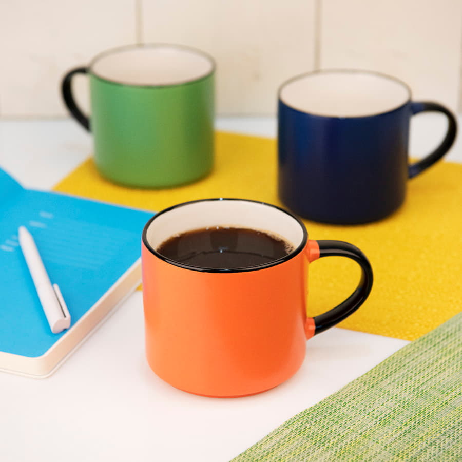 Ёмкая кружка трендовой цилиндрической формы с матовым покрытием.