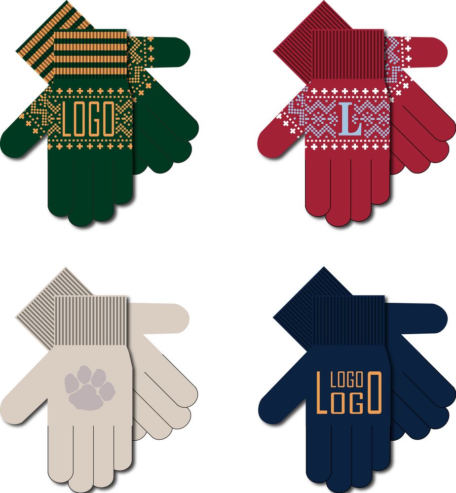 Модель: цельновязанные бесшовные перчатки с эластичной манжетой и жаккардовым узором в 2-3 цвета. Манжета может быть полосатой (горизонтальные полосы 1-2 цветов, без узора и логотипа).