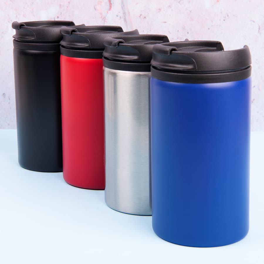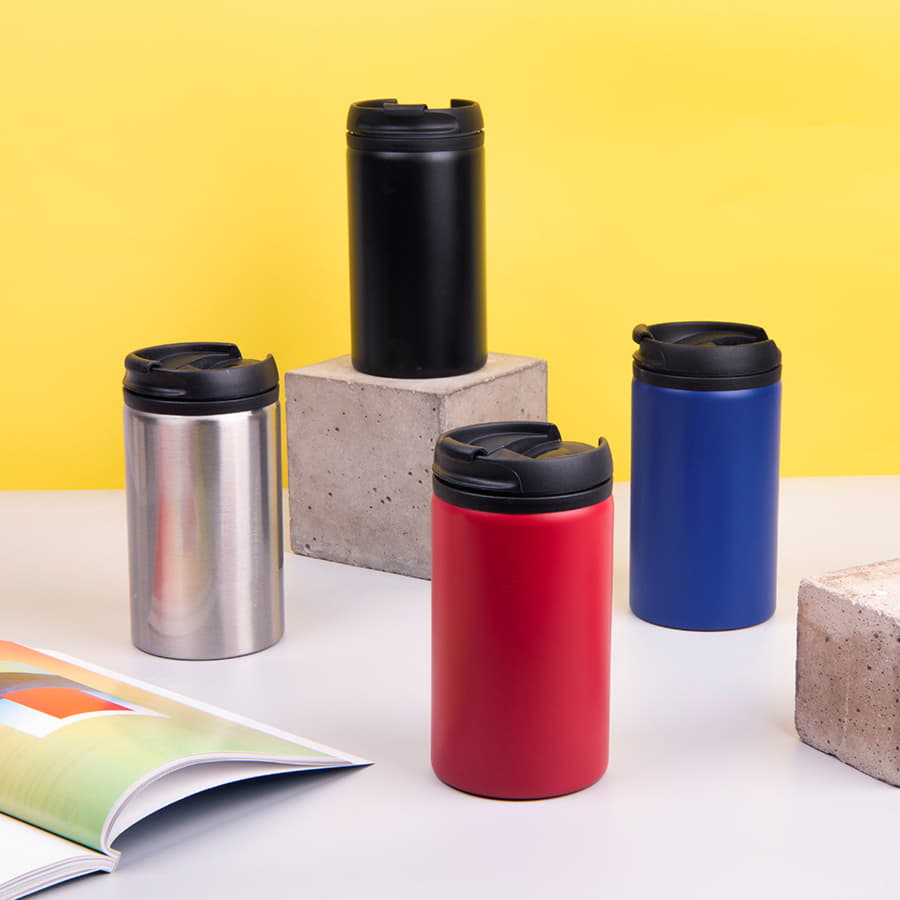 Коллекция термокружек CAN отличается яркими матовыми цветами и ровной цилиндрической формой.