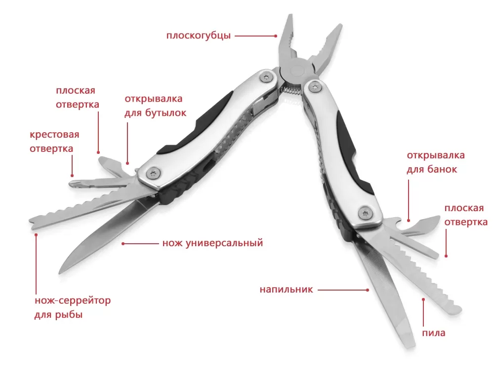 Настоящая находка для всех хозяйственных мужчин. Мультиинструмент всегда будет под рукой, так как его можно носить на поясе. Супер-пассатижи в чехле не так просты, как кажутся на первый взгляд! Они скрывают в себе целый арсенал нужных инструментов!
