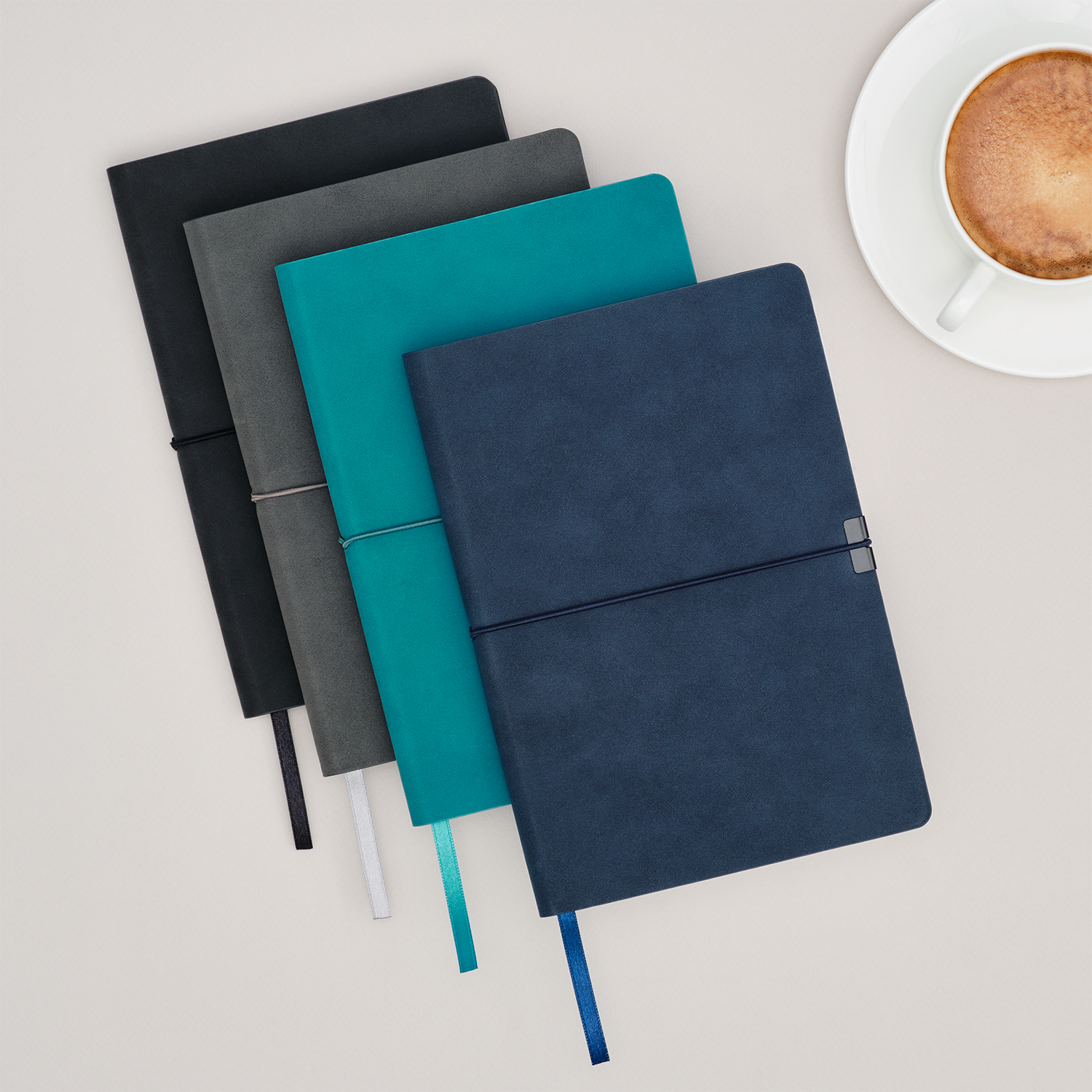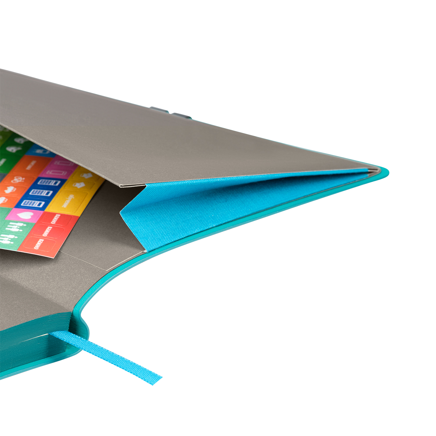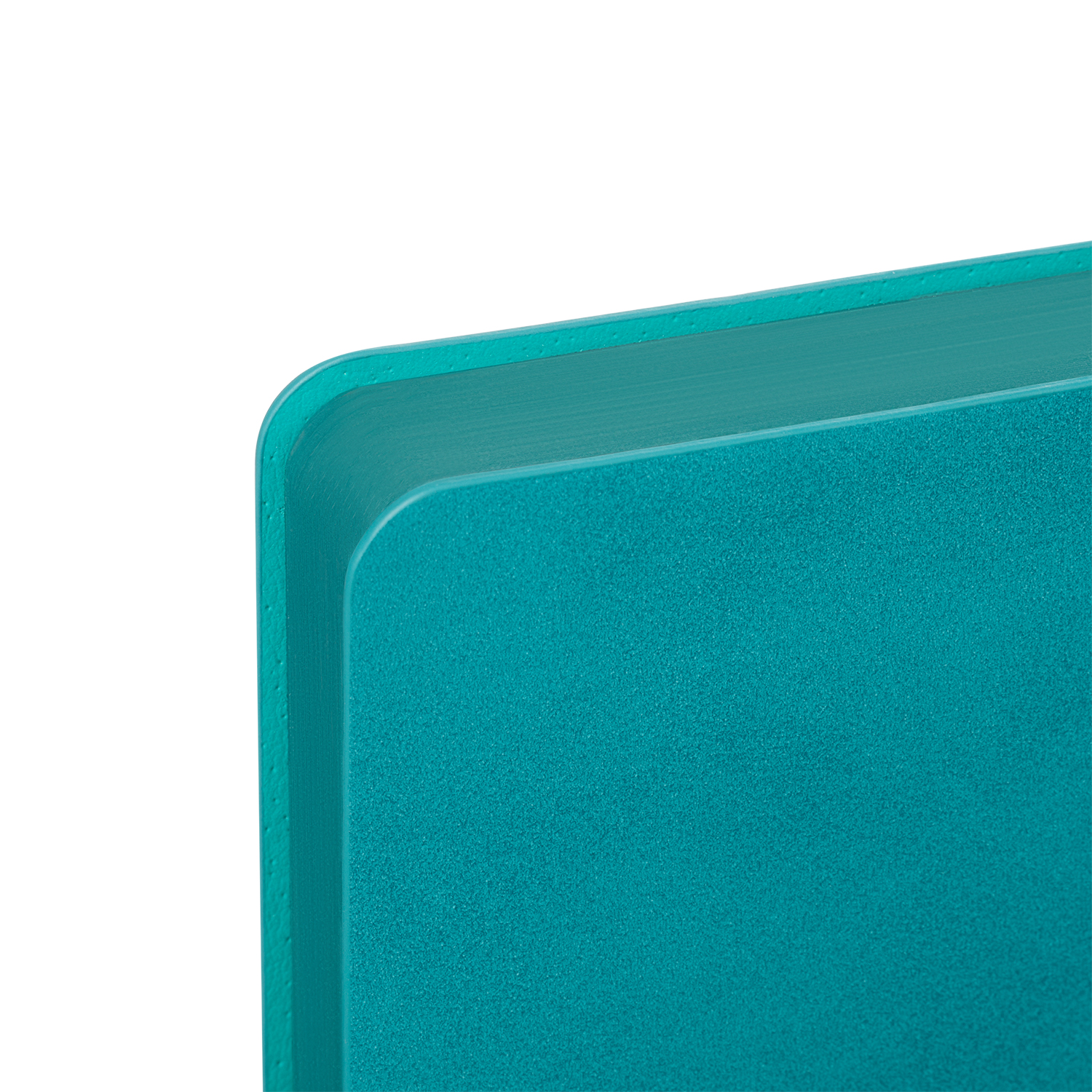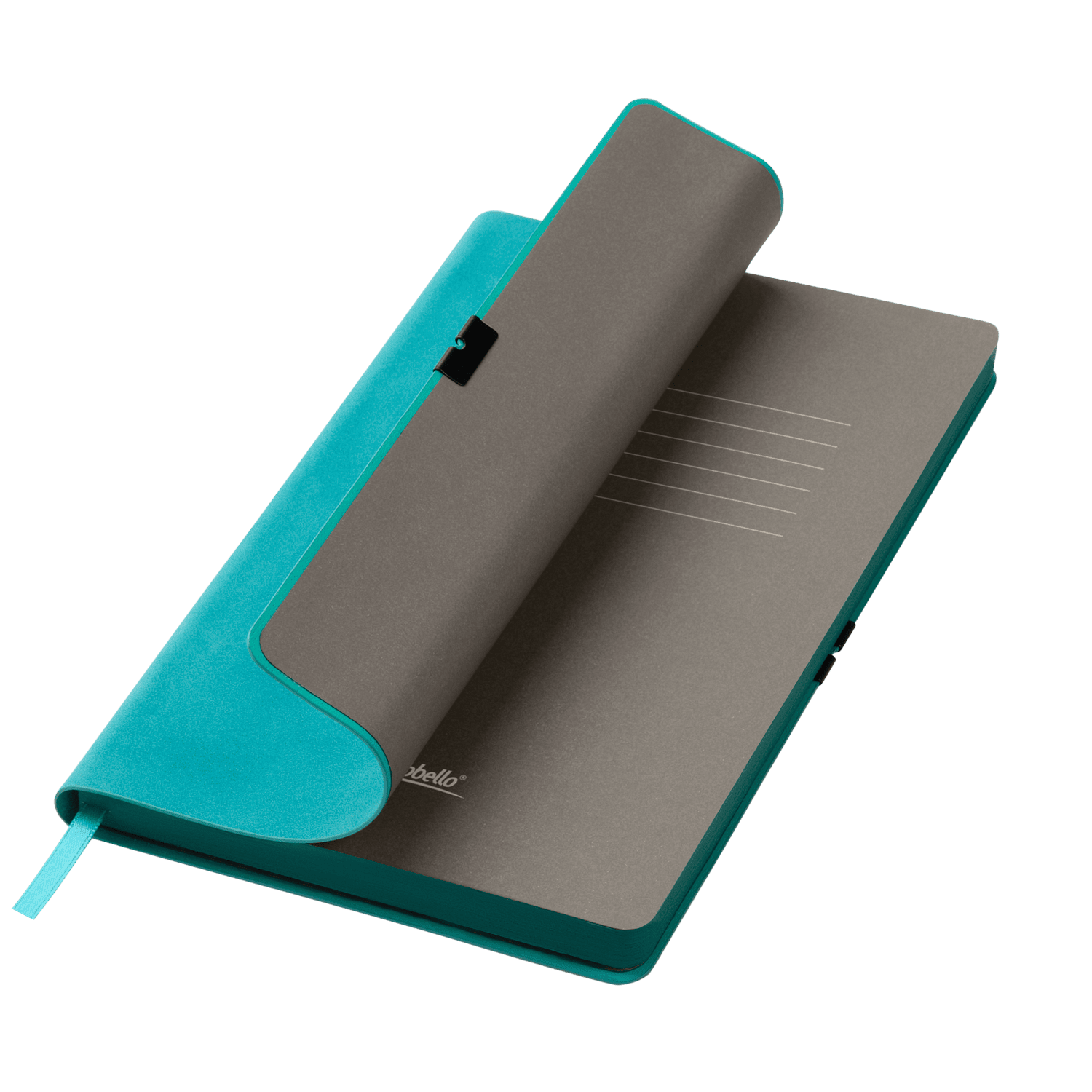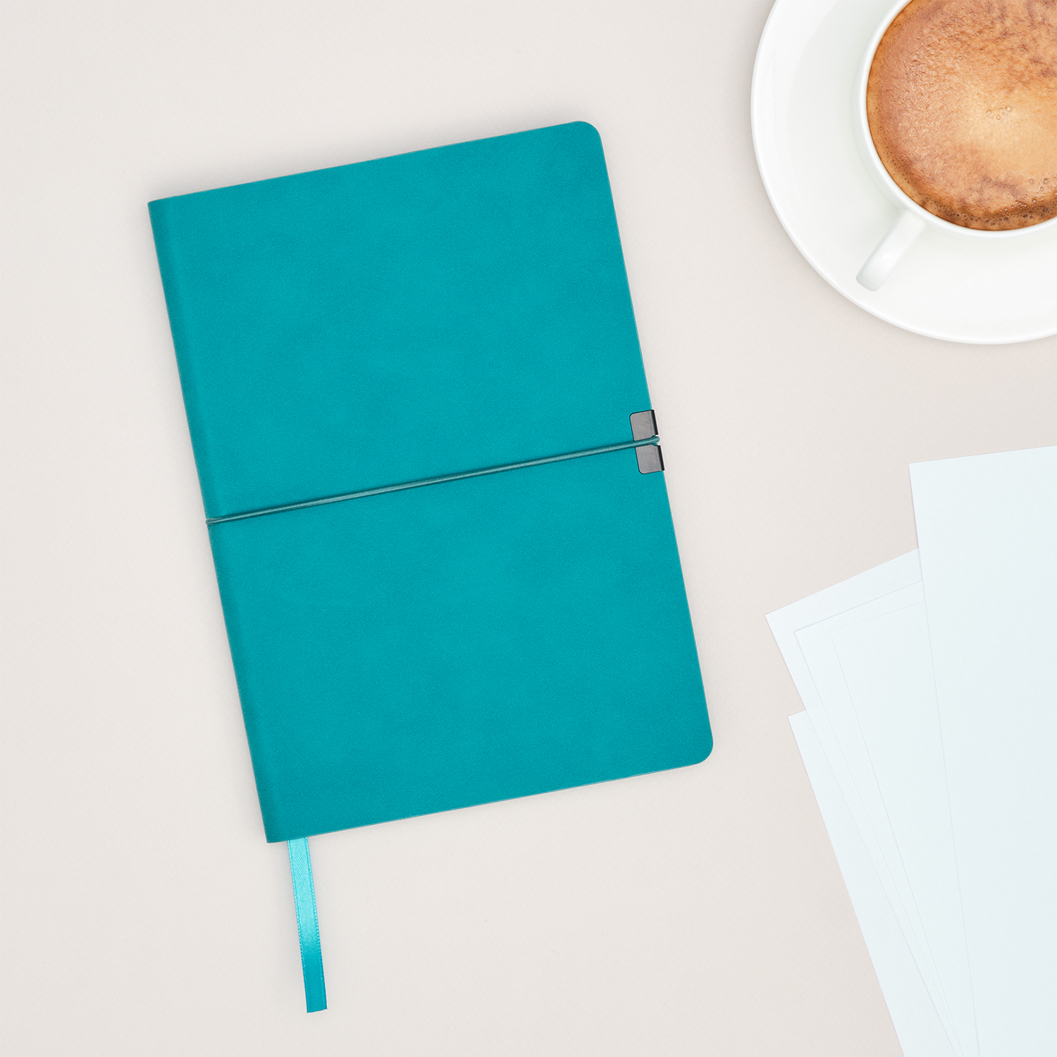 Коллекция In Velour - образец удачного сочетания минимализма со стильными элементами дизайна. Глубокий и изысканный бирюзовый цвет мягкой обложки обыгрывается горизонтальной фиксирующей резинкой. Чтобы избежать повреждений обложки, на обеих ее сторонах под резинку установлен металлический фиксатор цвета черный никель - он не только улучшает внешний вид аксессуара, но и функционально полезен. Цветовой ансамбль дополняется и матовым цветным срезом, выполненным в тон обложке. Поверхность ежедневника приятна на ощупь: материал напоминает нубук и имеет бархатистую поверхность. Также эффектность аксессуара поддерживается контрастными форзацем и нахзацем серого цвета и светло-кремовыми страницами из гладкого, слегка шелковистого офсета. Бирюзовое атласное ляссе органично завершает внешний вид ежедневника.