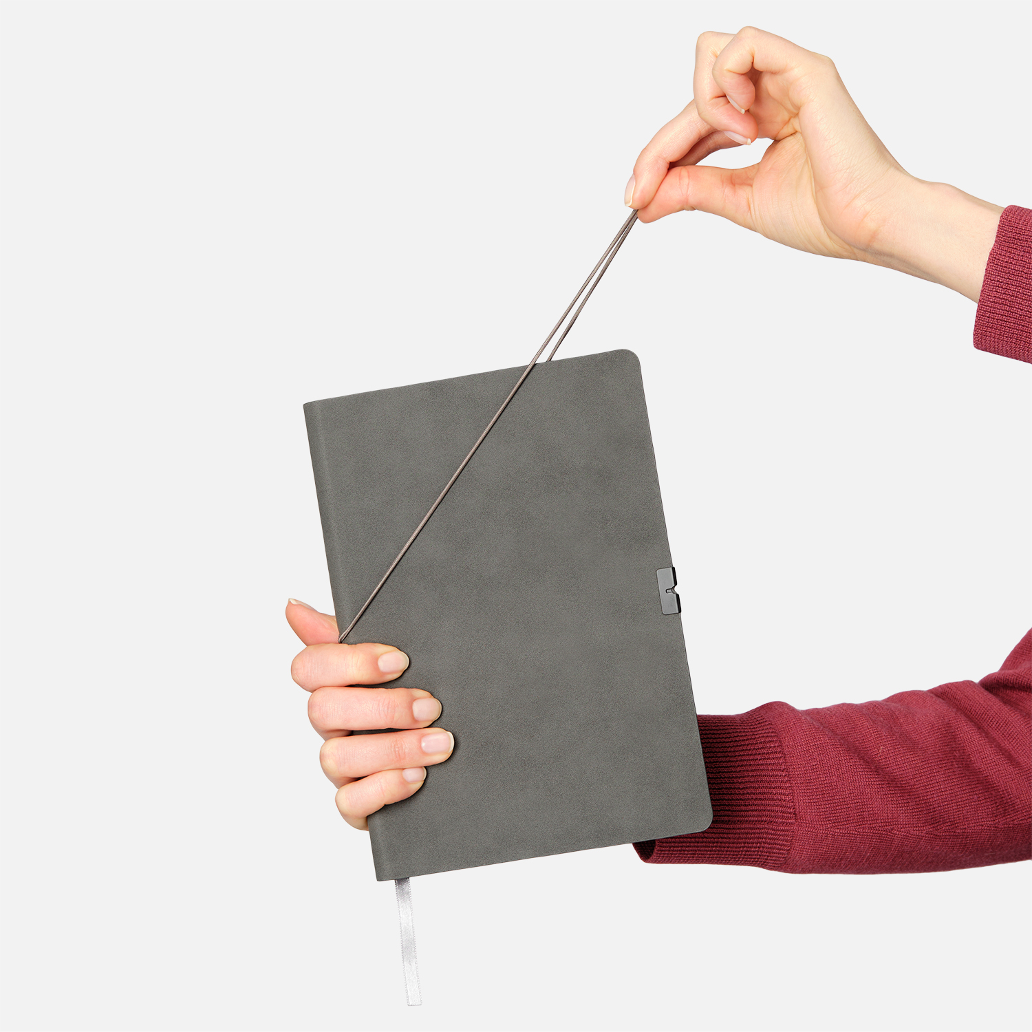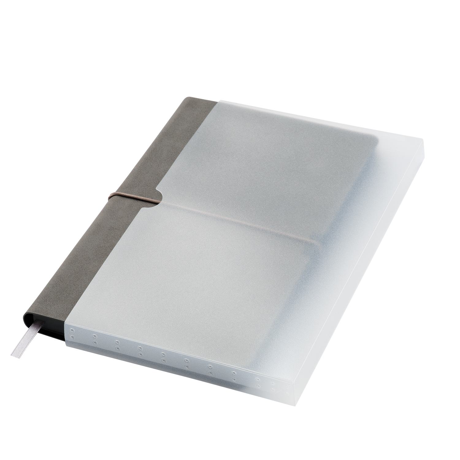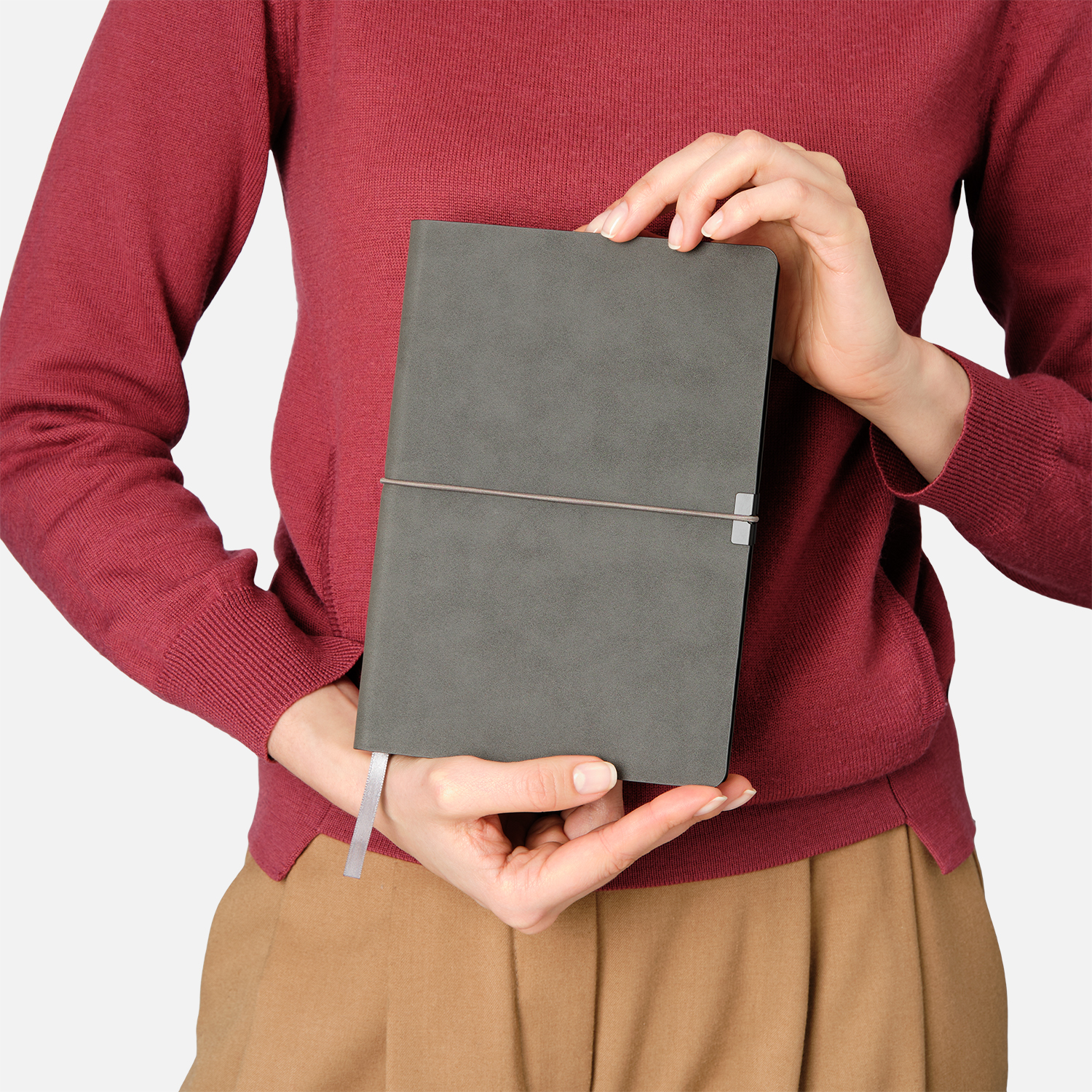 Коллекция In Velour - образец удачного сочетания минимализма со стильными элементами дизайна. Элегантный классический серый цвет мягкой обложки обыгрывается горизонтальной фиксирующей резинкой. Чтобы избежать повреждений обложки, на обеих ее сторонах под резинку установлен металлический фиксатор цвета черный никель - он не только улучшает внешний вид аксессуара, но и функционально полезен. Цветовой ансамбль дополняется и матовым цветным срезом, выполненным в тон обложке. Поверхность ежедневника приятна на ощупь: материал напоминает нубук и имеет бархатистую поверхность. Также эффектность аксессуара поддерживается форзацем и нахзацем серого цвета и светло-кремовыми страницами из гладкого, слегка шелковистого офсета. Серое атласное ляссе органично завершает внешний вид ежедневника.