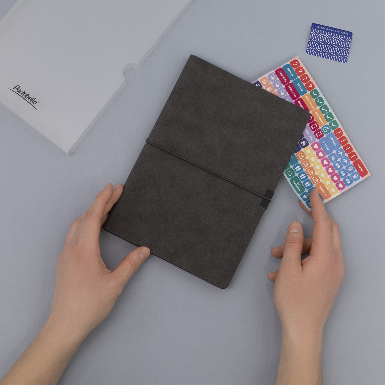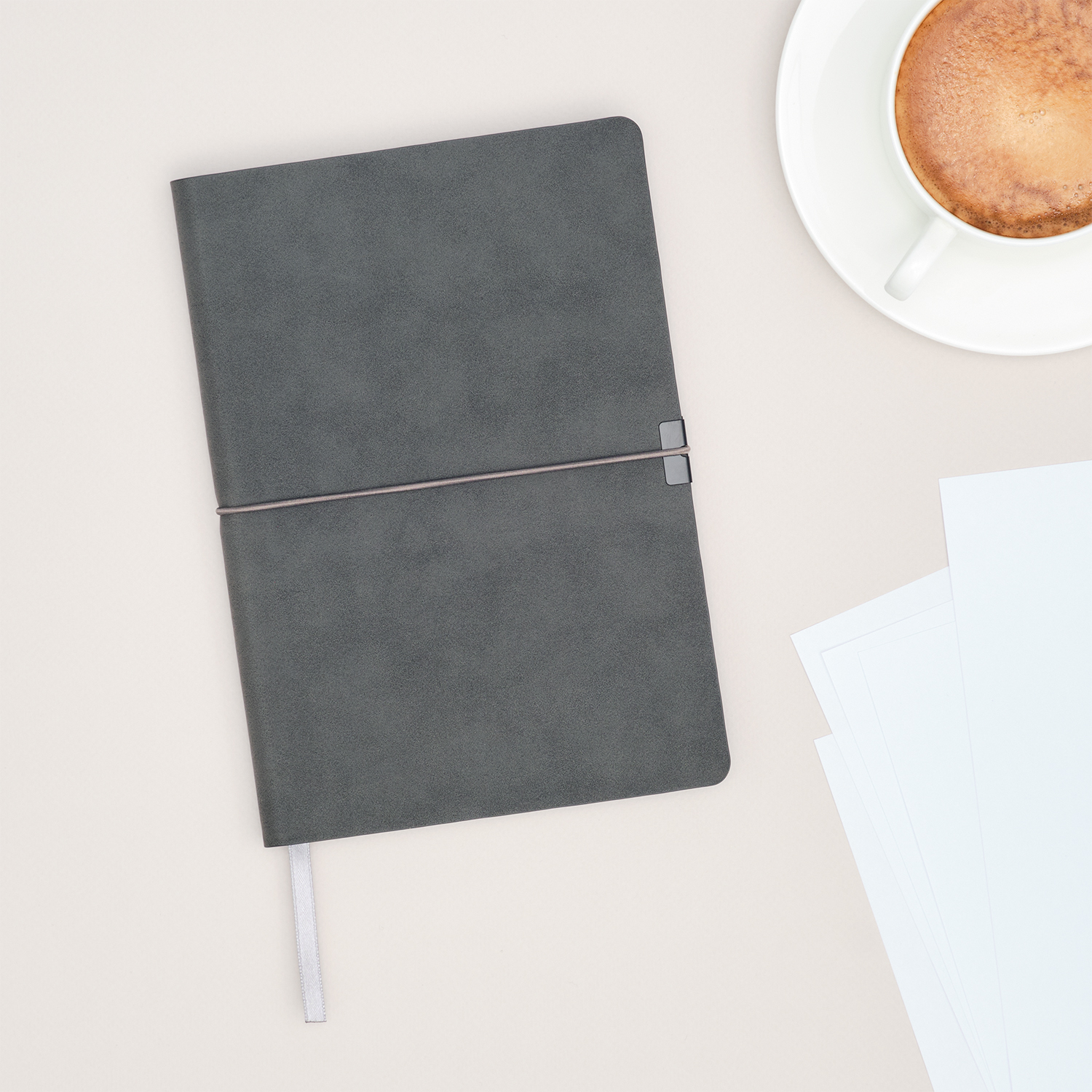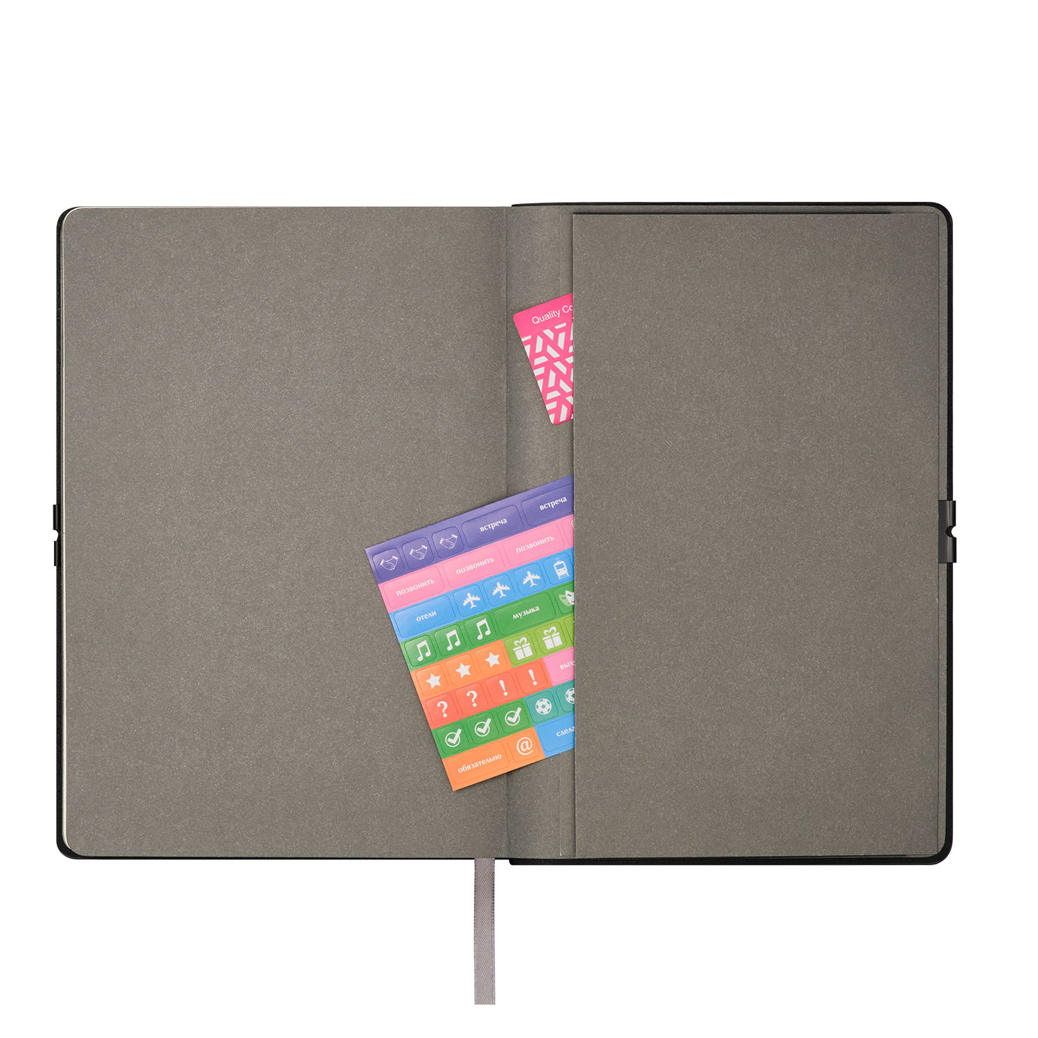 Коллекция In Velour - образец удачного сочетания минимализма со стильными элементами дизайна. Элегантный классический серый цвет мягкой обложки обыгрывается горизонтальной фиксирующей резинкой. Чтобы избежать повреждений обложки, на обеих ее сторонах под резинку установлен металлический фиксатор цвета черный никель - он не только улучшает внешний вид аксессуара, но и функционально полезен. Цветовой ансамбль дополняется и матовым цветным срезом, выполненным в тон обложке. Поверхность ежедневника приятна на ощупь: материал напоминает нубук и имеет бархатистую поверхность. Также эффектность аксессуара поддерживается форзацем и нахзацем серого цвета и светло-кремовыми страницами из гладкого, слегка шелковистого офсета. Серое атласное ляссе органично завершает внешний вид ежедневника.