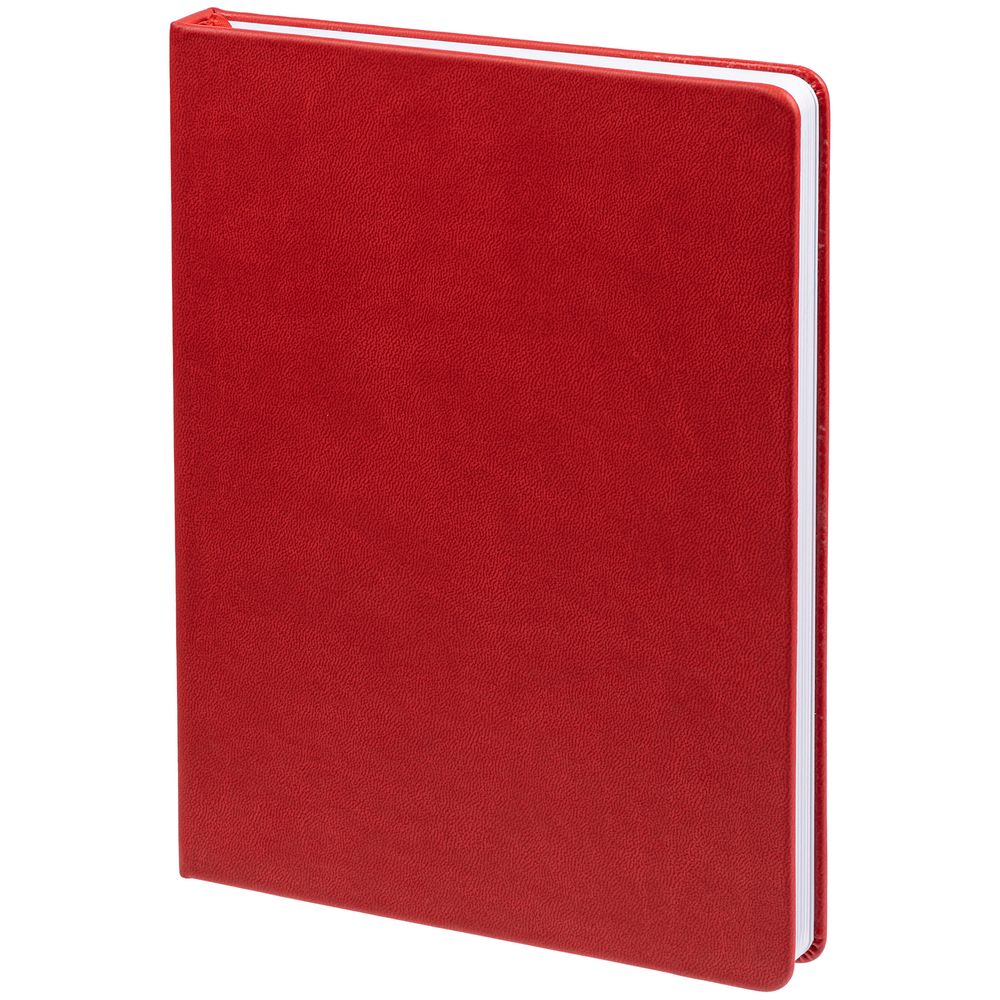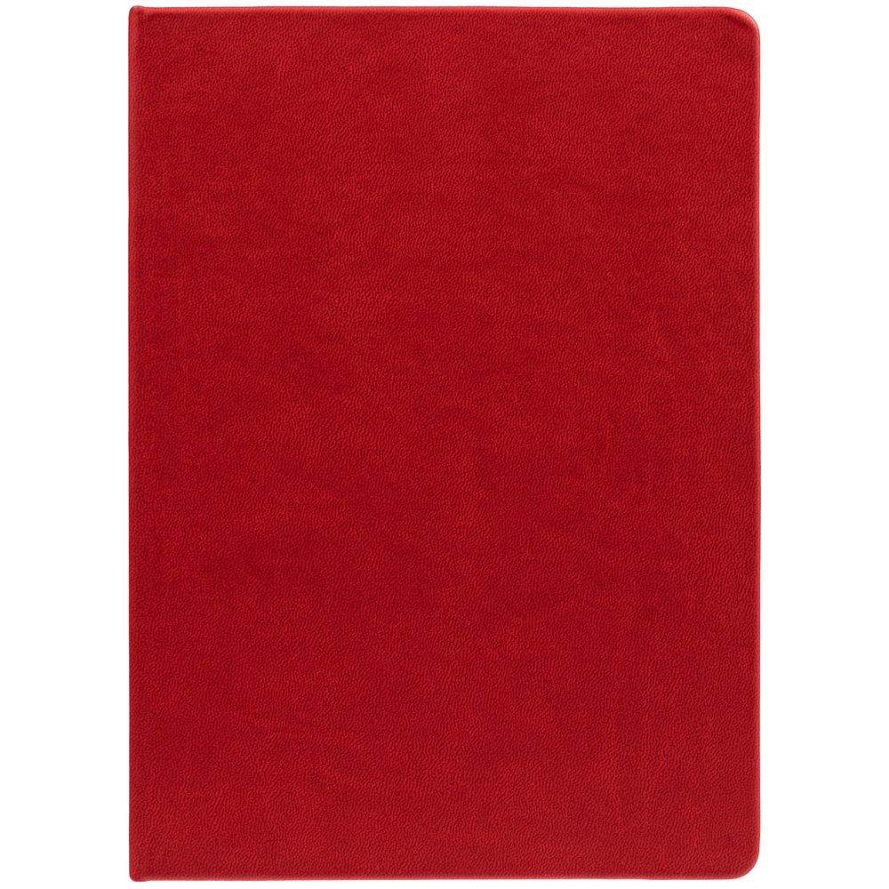 Ежедневник с твердой обложкой. Выполнен из материала Latte, красный, дополнен ляссе в цвет обложки.