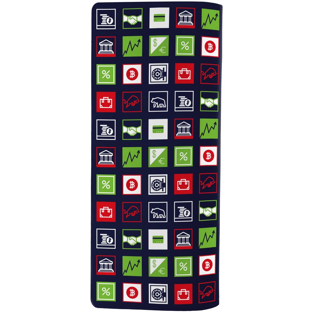 Прочный непромокаемый материал аксессуара сохранит важные документы сотрудника в деловой поездке, а минималистичный дизайн создаст особую эстетику. В каждой части общего рисунка изображены главные символы финансовой отрасли.