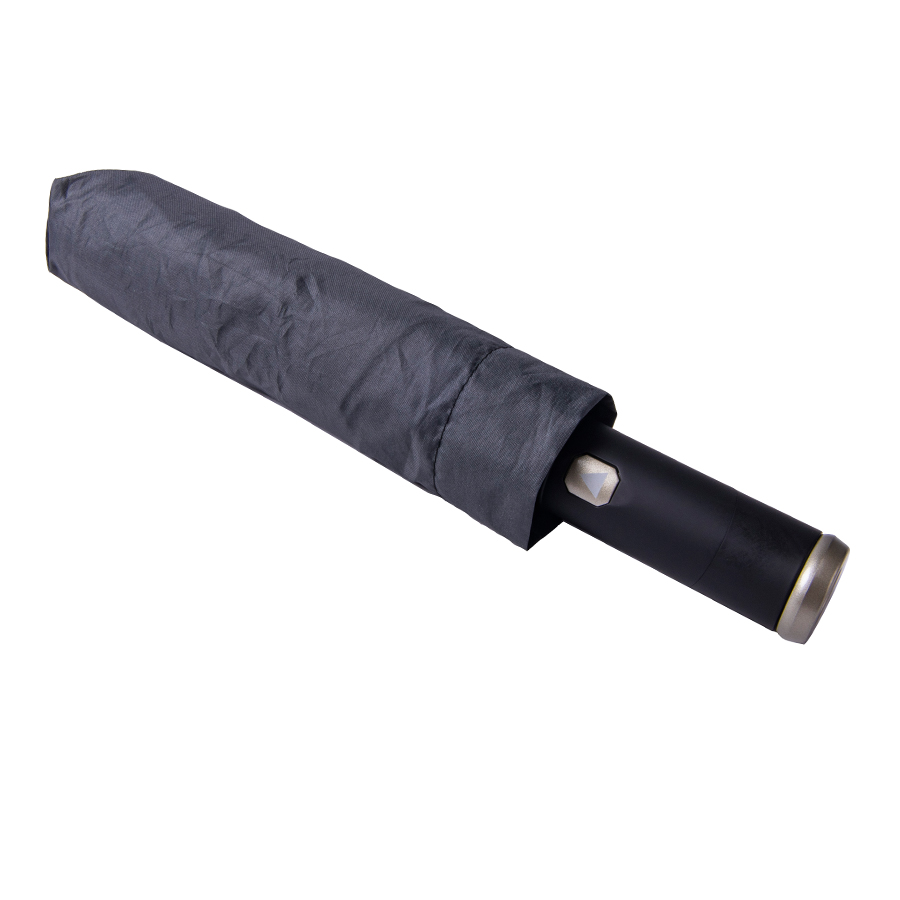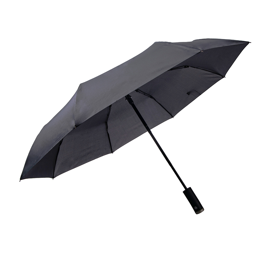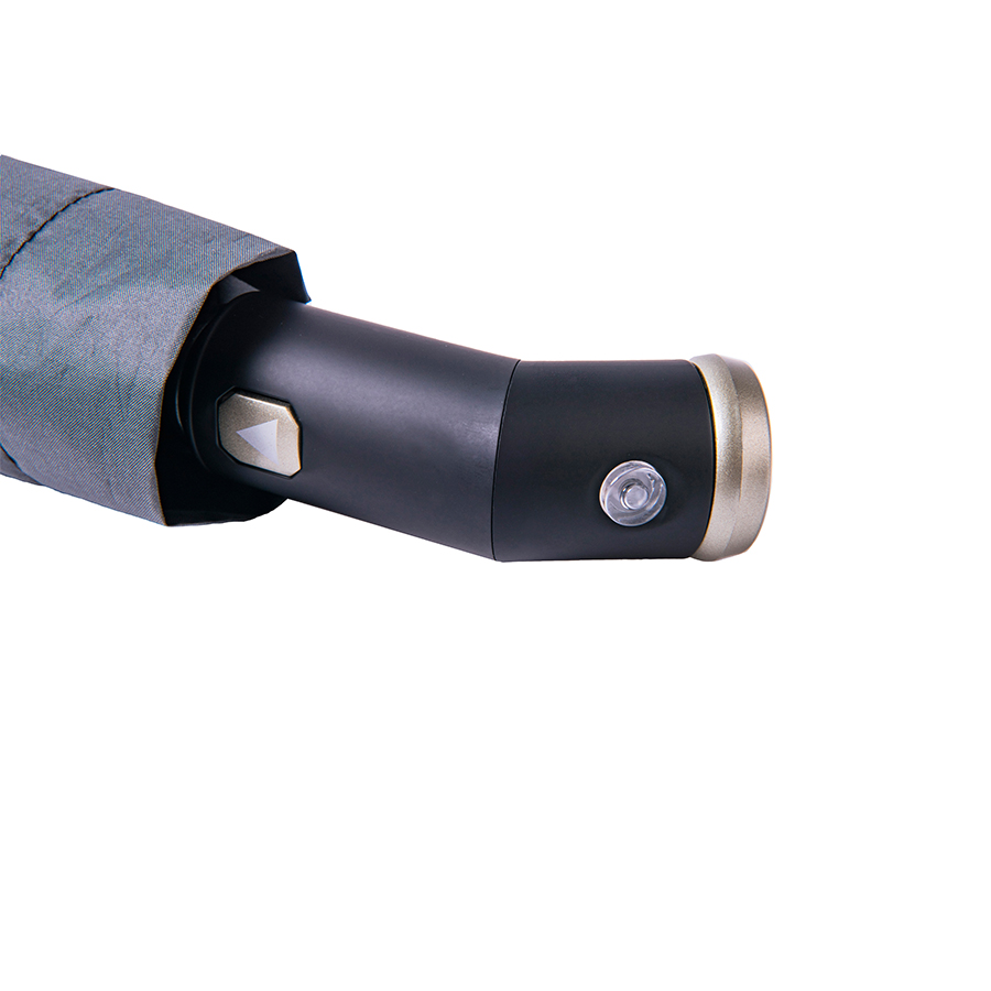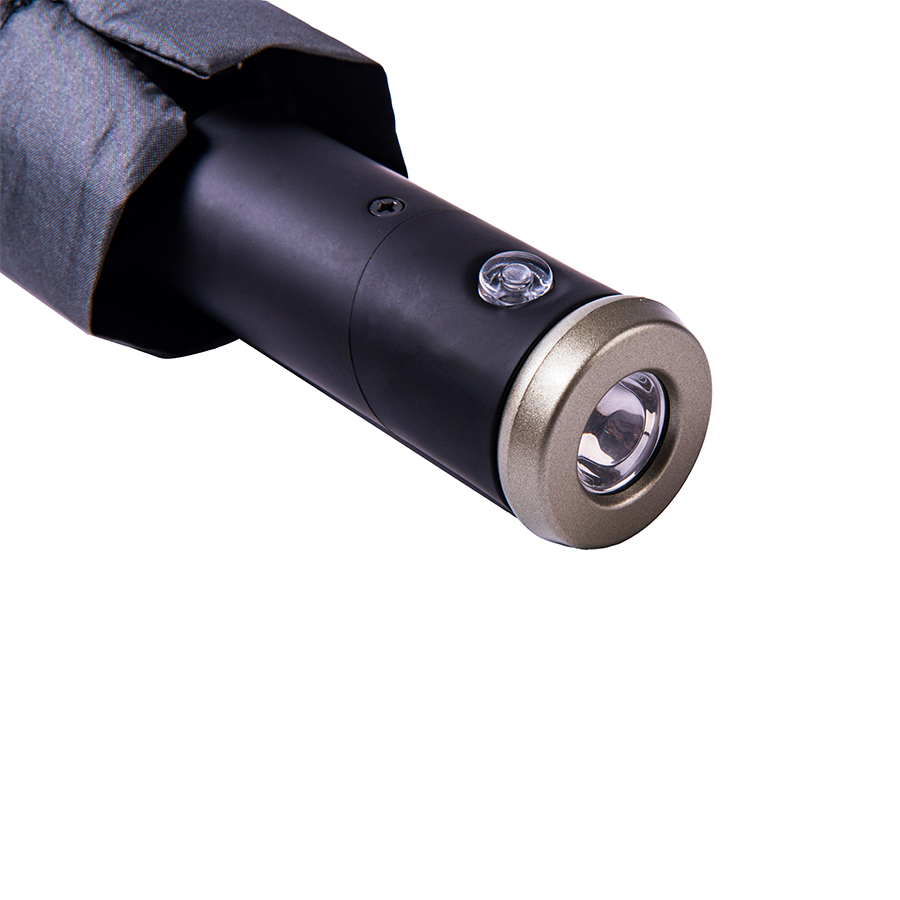 Зонт PRESTON складной с ручкой-фонариком, полуавтомат; темно-серый; D=100 см; нейлон