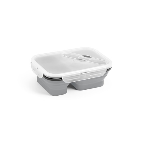 Герметичный выдвижной ящик из силикона и полипропилена с двумя отделениями емкостью до 480 мл и 760 мл. Вверху крышки находится штуцер со столовыми приборами (в комплекте) с функцией 2 в 1, вилкой и ложкой. Коробка подходит для микроволновой печи, крышка должна быть снята. 212 x 153 x 73 мм | Изгиб: 212 x 153 x 38 мм