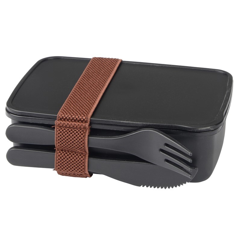 Ланч-бокс ECO BREAK: изготовлен из возобновляемых ресурсов + PP, крышка с герметичной резинкой, в наборе вилка и нож на специальной тесьме
