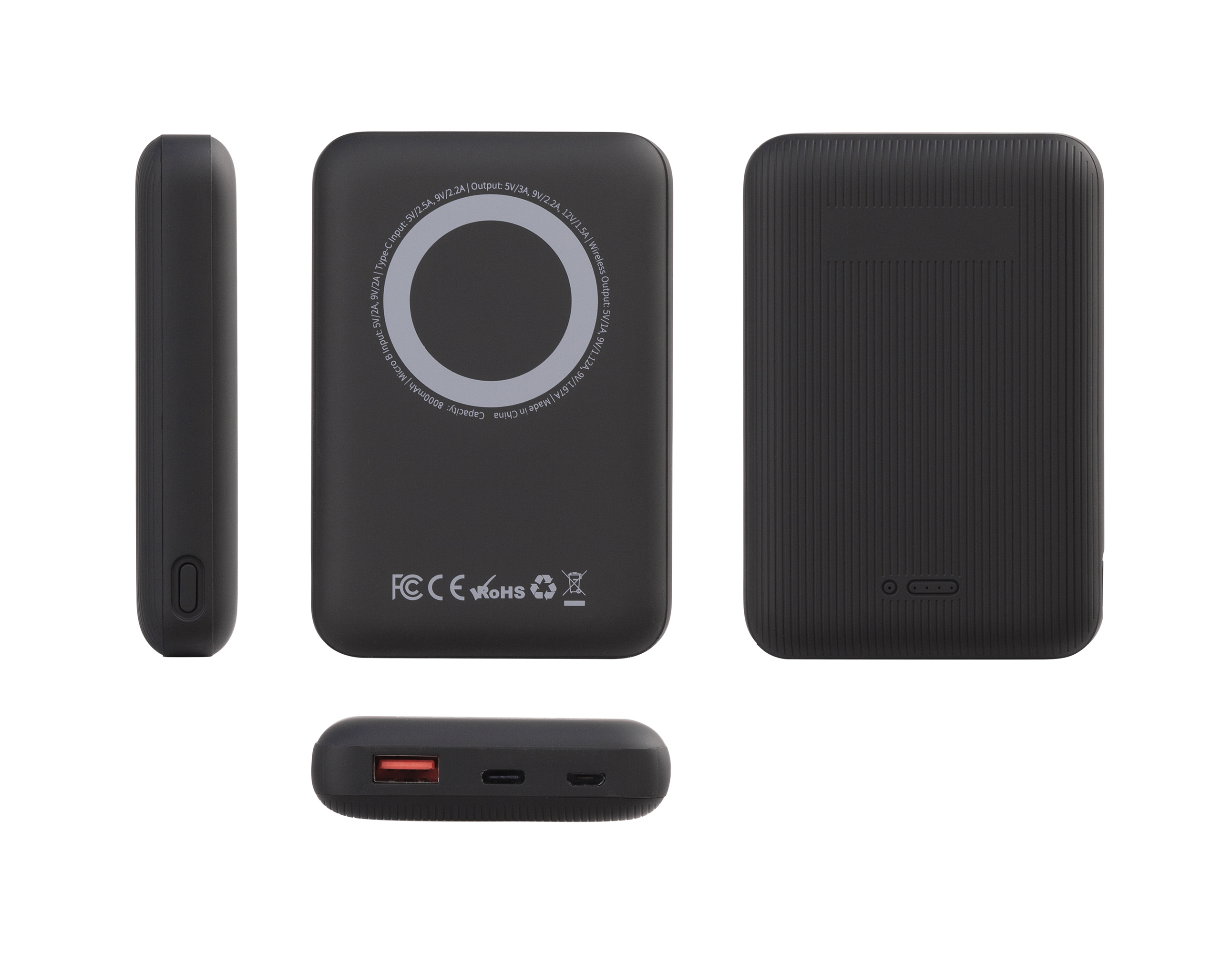 Беспроводное магнитное ЗУ Forsage SOFTTOUCH, 8000 mAh с быстрой проводной (20W) и беспроводной (15W) зарядкой, покрытие soft touch, черный