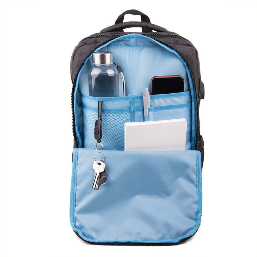 Функциональный рюкзак CORE с RFID защитой, тёмно-серый, голубой