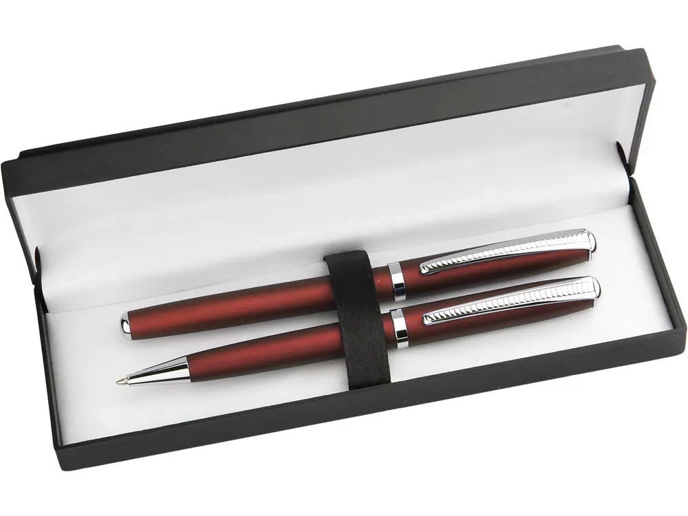 Стильный подарочный набор в фирменной коробке. Шариковая ручка с поворотным механизмом и ручка-роллер со съемным колпачком. Единый дизайн, оригинальное оформление. На металлический корпус обеих ручек можно нанести индивидуальную гравировку.