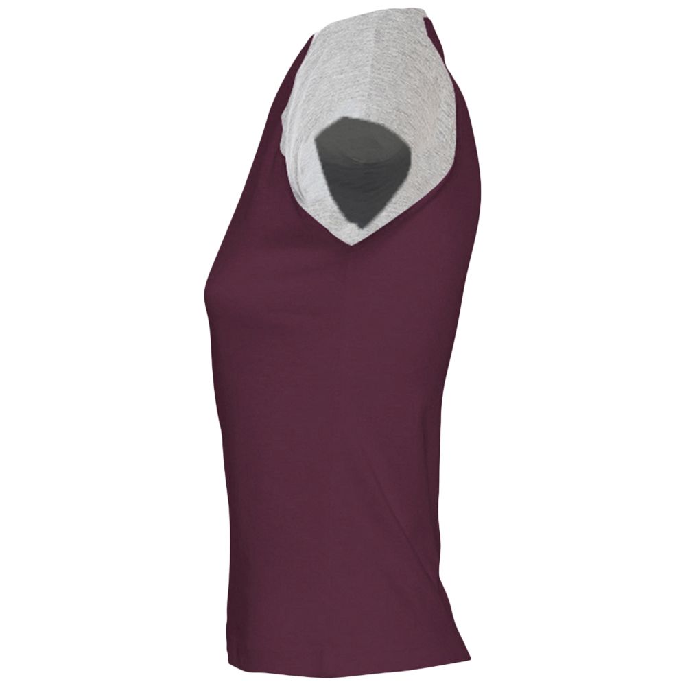 Кроенная футболка с рукавом реглан. Укрепляющая тесьма по вороту, край круглого ворота связан резинкой с эластаном.
