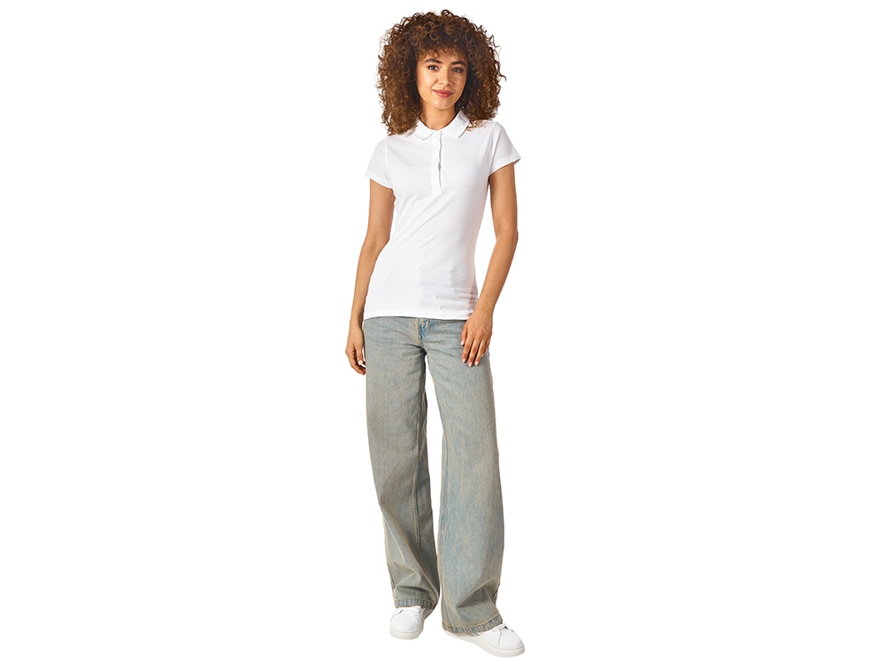 Женская рубашка-поло First. Воротник 1х1. Обшивка внутри воротника. Мужская и детская модели с 2 пуговицами, женская - с 4 пуговицами. Пуговицы с гравировкой в тон. Пике, 100% хлопок. 160 г/м2.