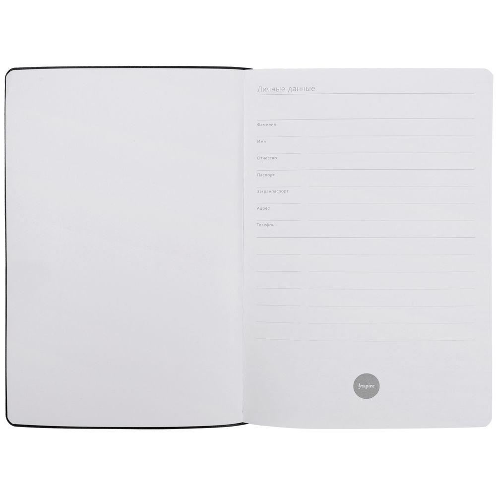 Ежедневник с гибкой обложкой, выполнен из материала Latte, черный, дополнен ляссе в цвет обложки.