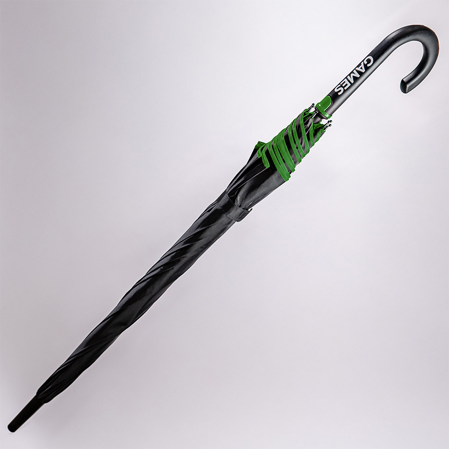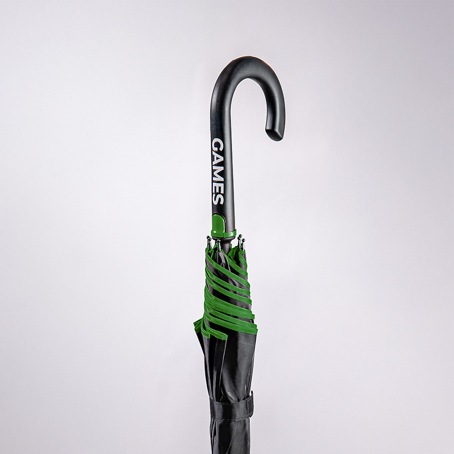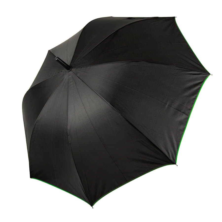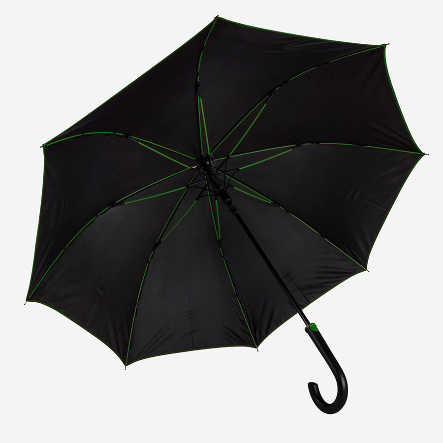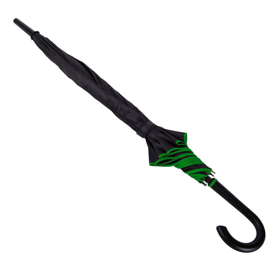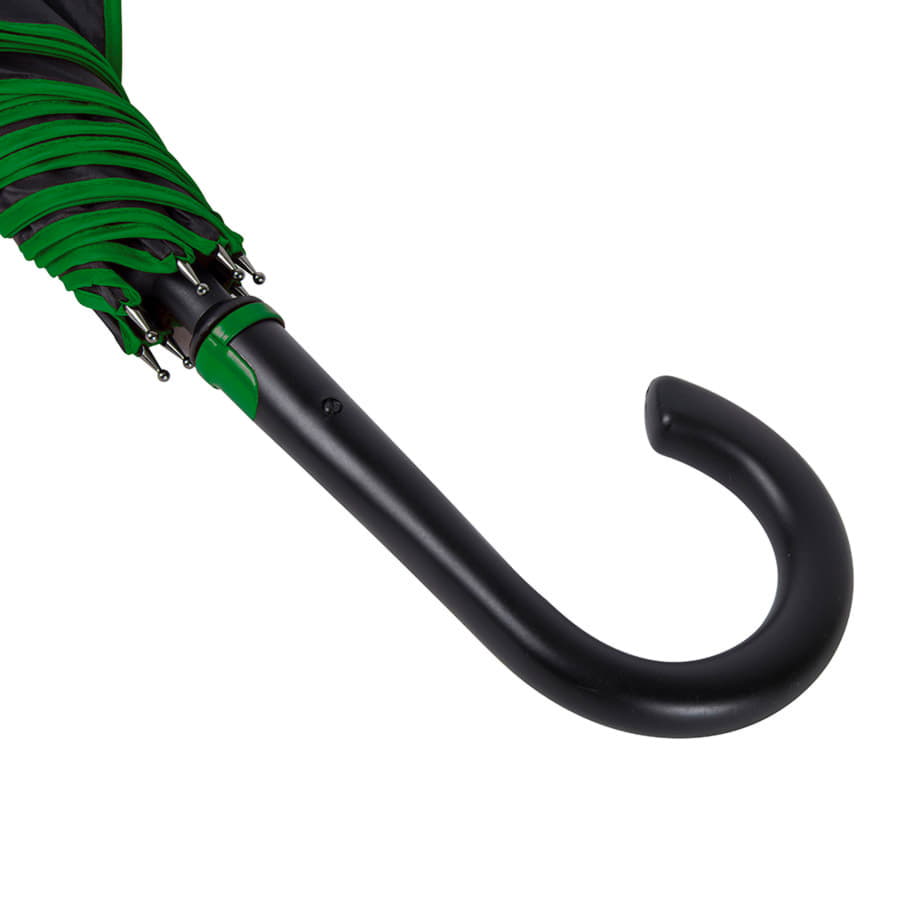 Зонт-трость BACK TO BLACK, пластиковая ручка, полуавтомат, черный, зеленый
